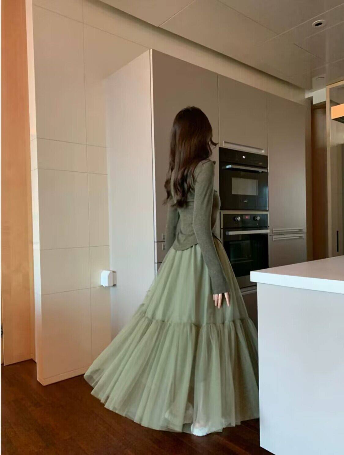 📚 很仙很美文艺风温柔连衣裙 23春新长袖修身上衣+大摆长裙 套装裙