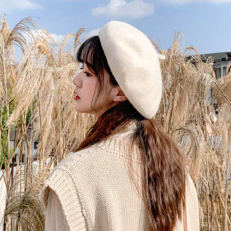 📚 适合小头围的帽子女款52cm秋冬浅顶韩版毛呢贝雷帽小码48xs画家帽