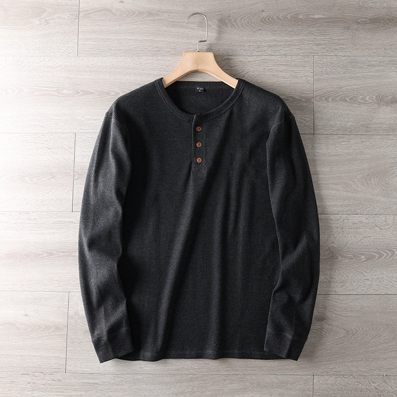 📚 优质华夫格!亨利领 春季男士时尚休闲基础纯色打底长袖T恤薄卫衣