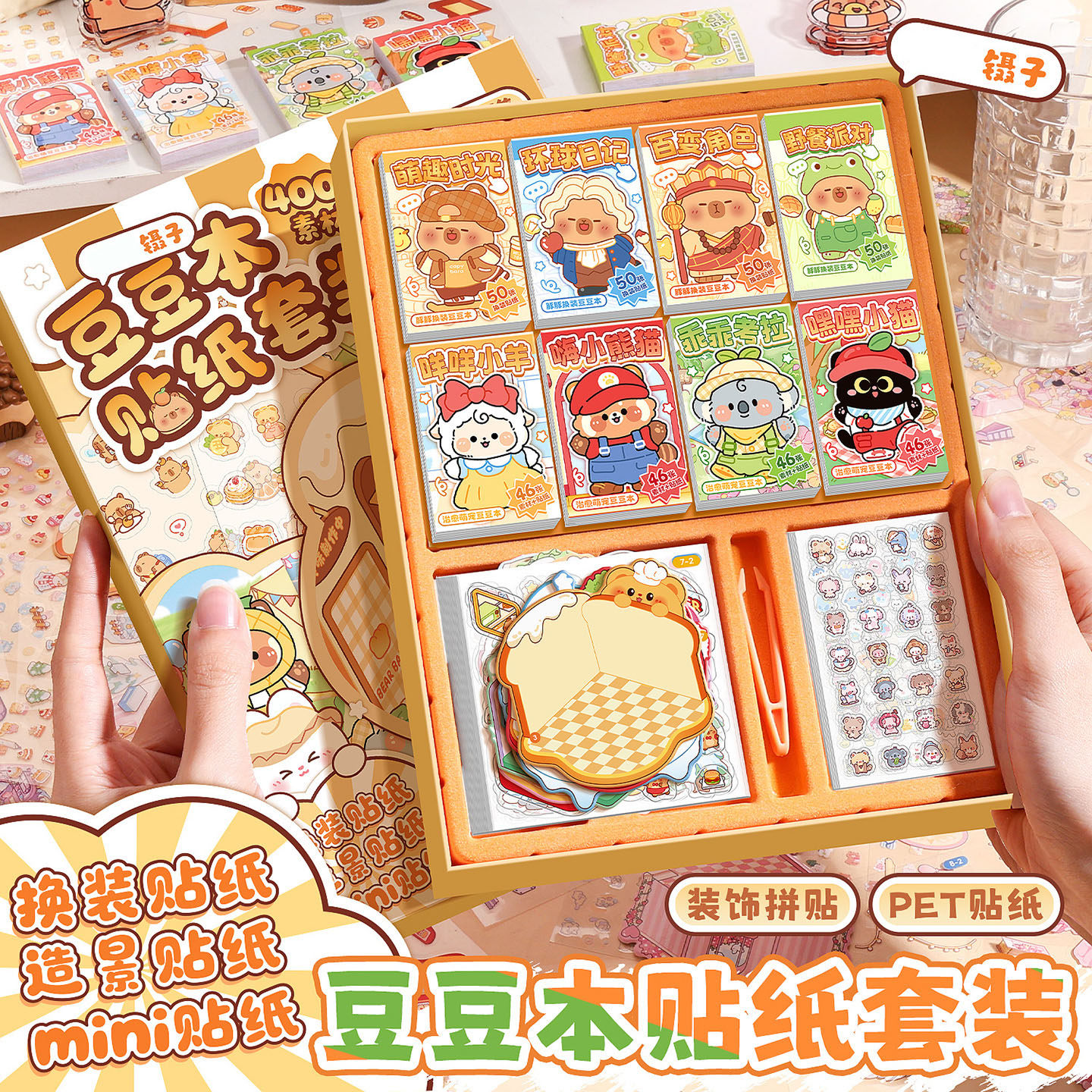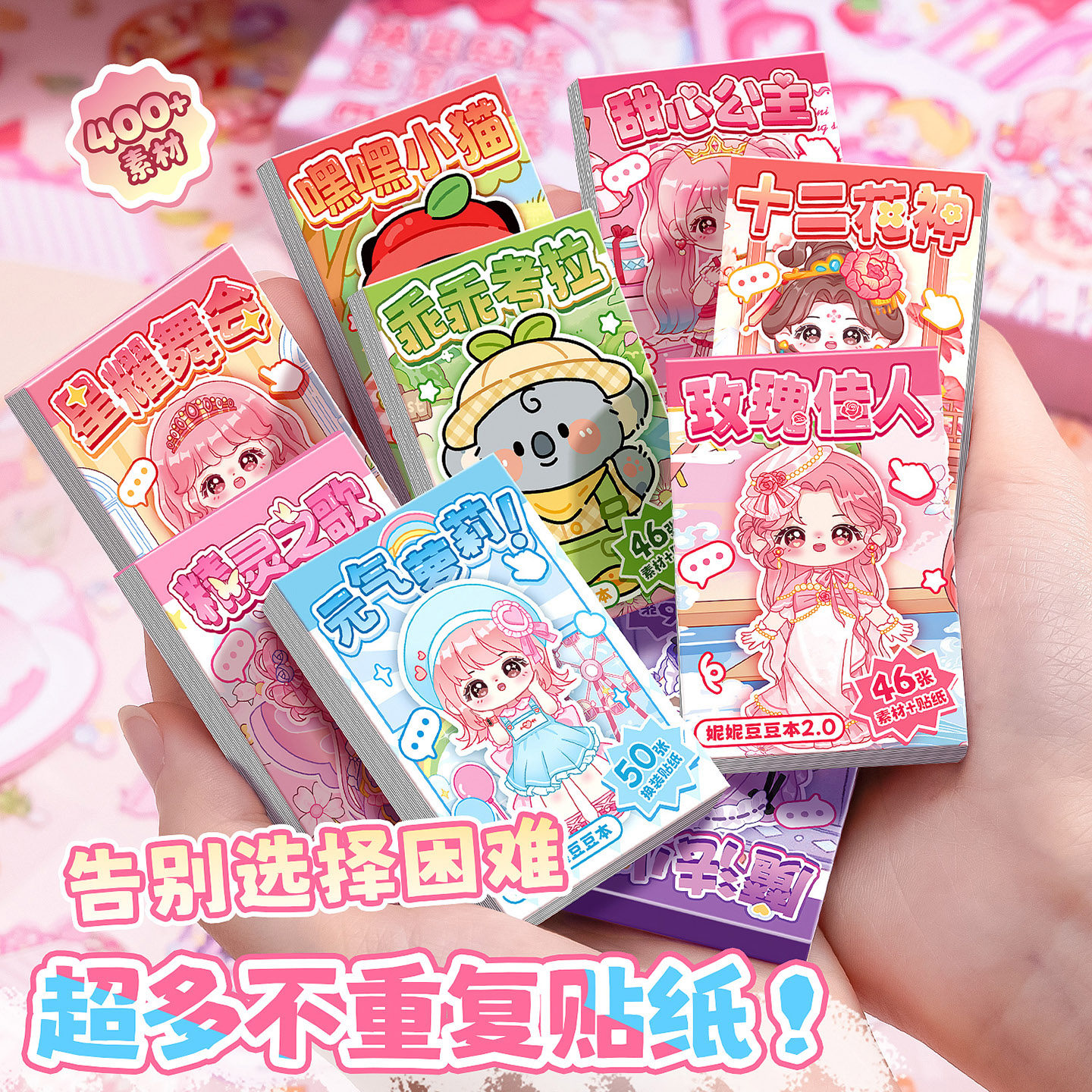 📚 换装豆豆本礼盒套装女孩儿童贴纸书迷你微缩造景场景手帐贴纸儿童免裁剪3d立体贴画安静书装饰小图案手账素材