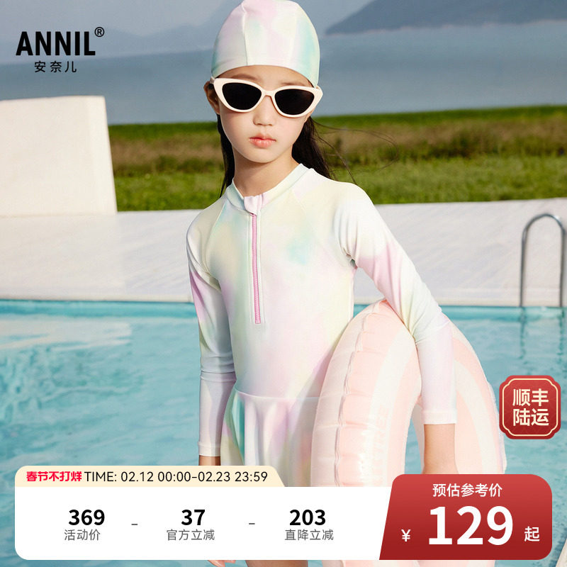 📚 安奈儿童装女童连体长袖泳衣套装夏新款高弹力疏水泳池训练