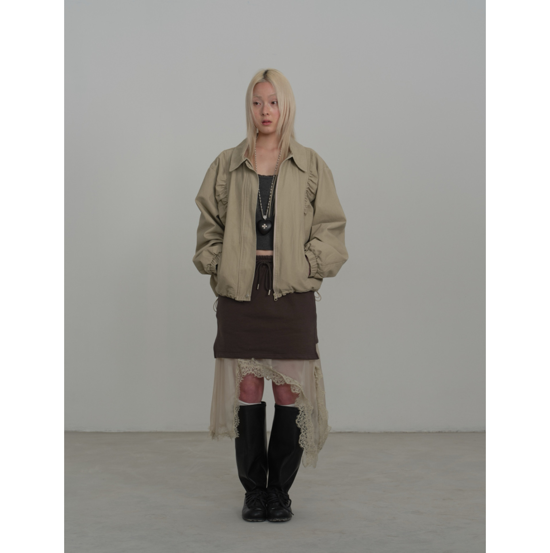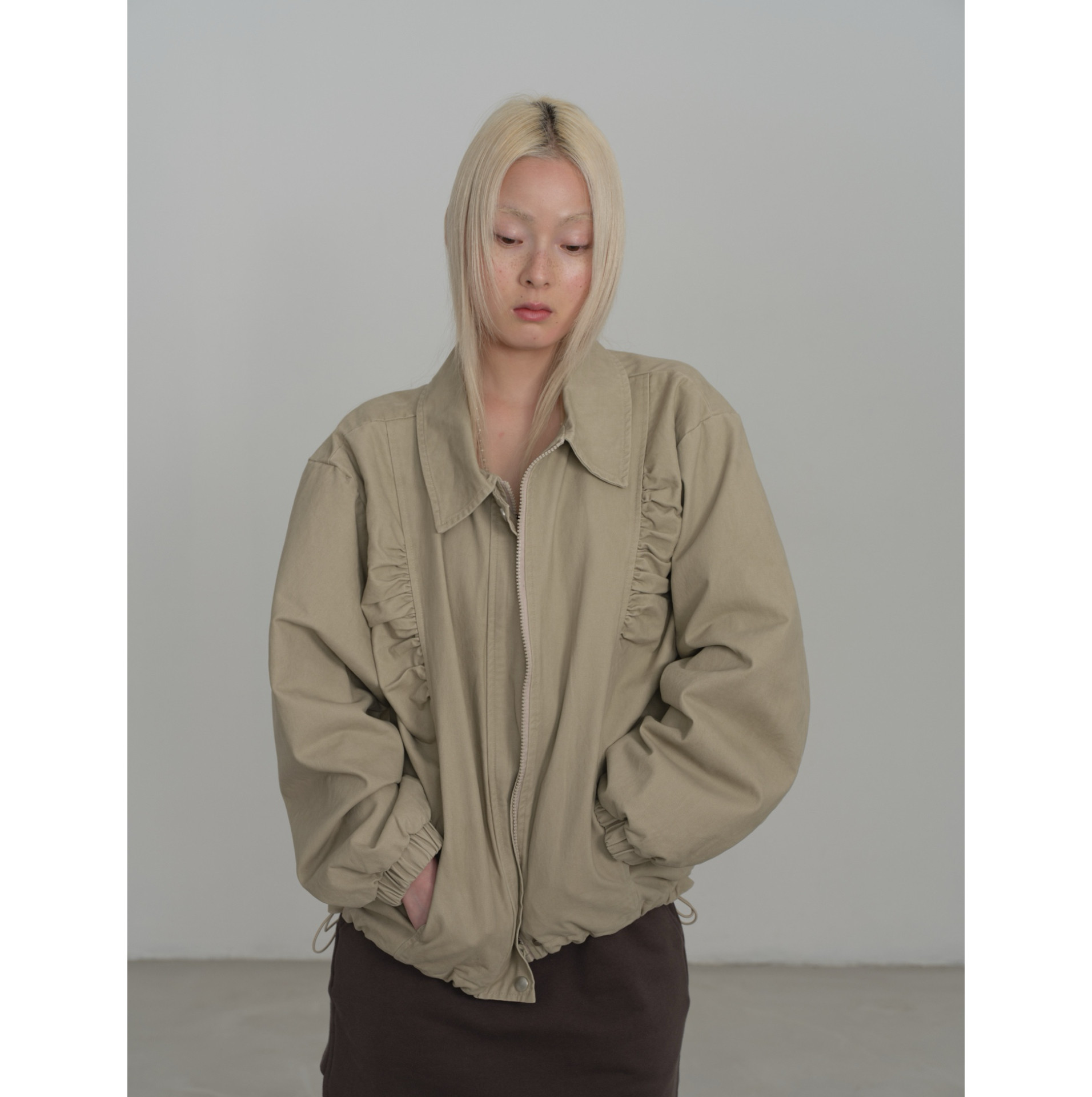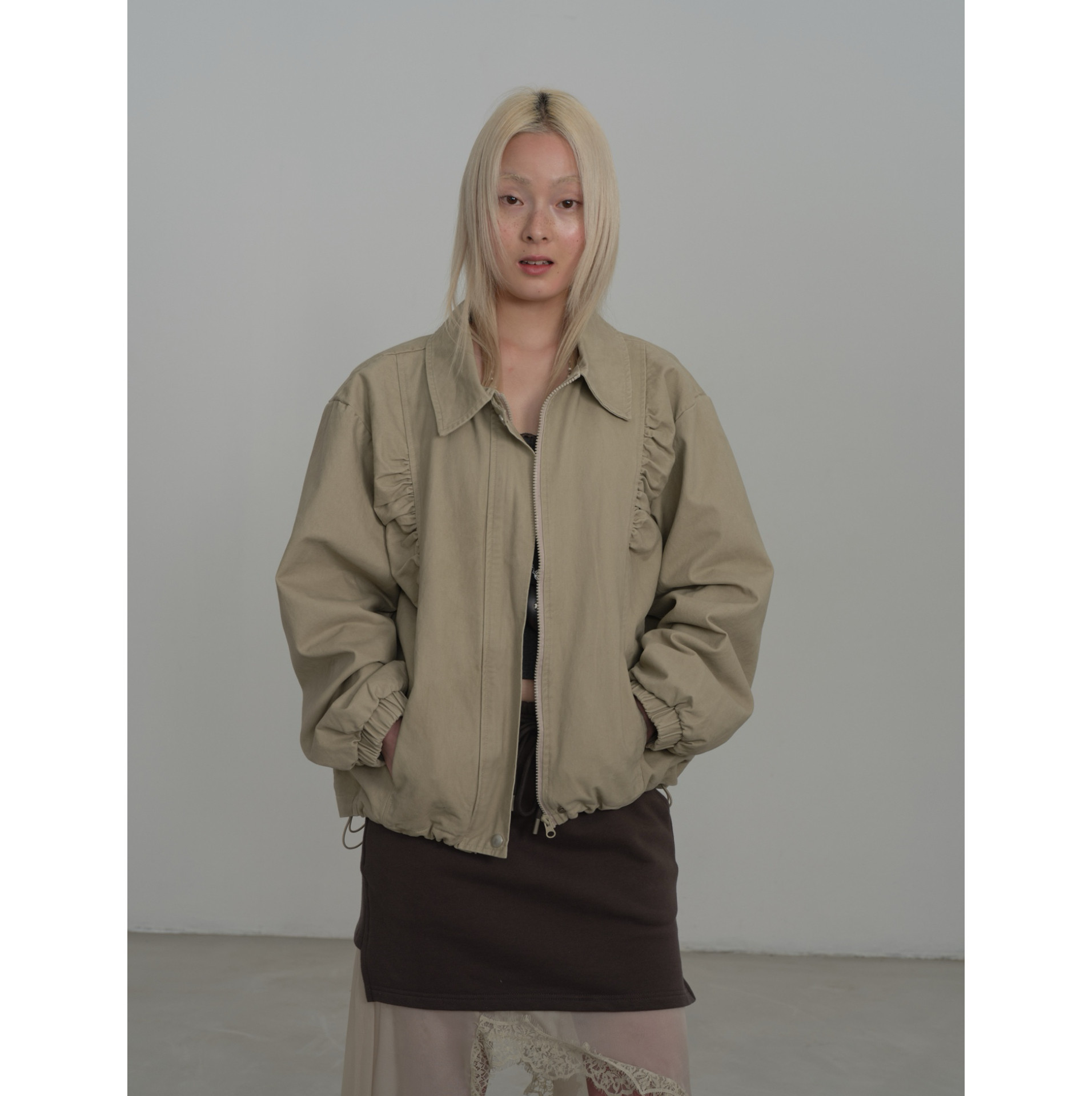 📚 Rebornique miu系小众设计抽褶廓形短外套 卡其色书呆子夹克女