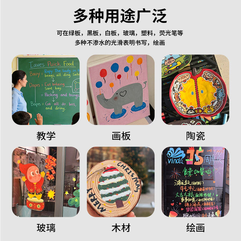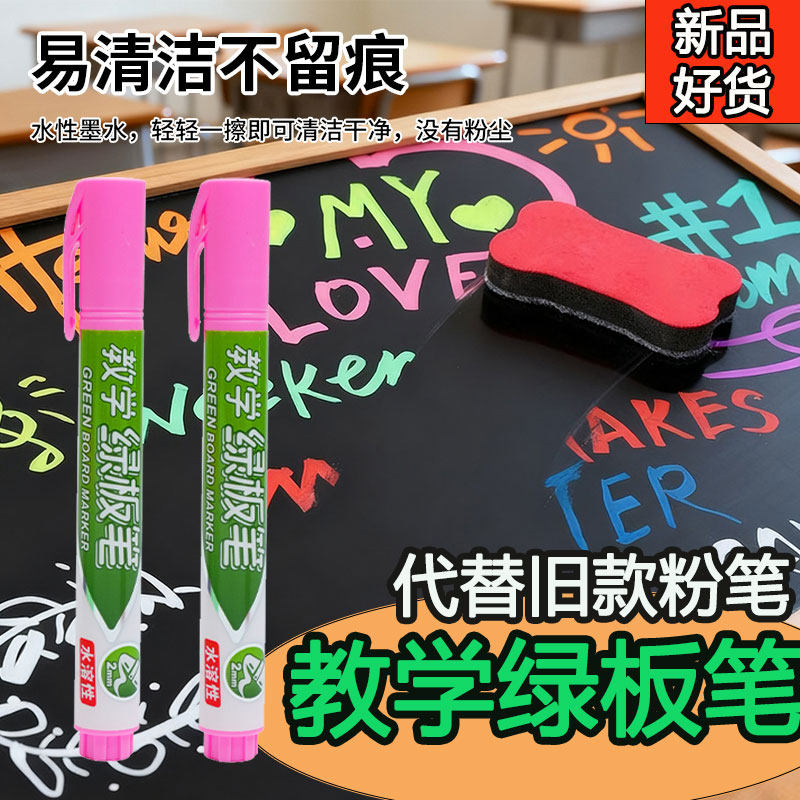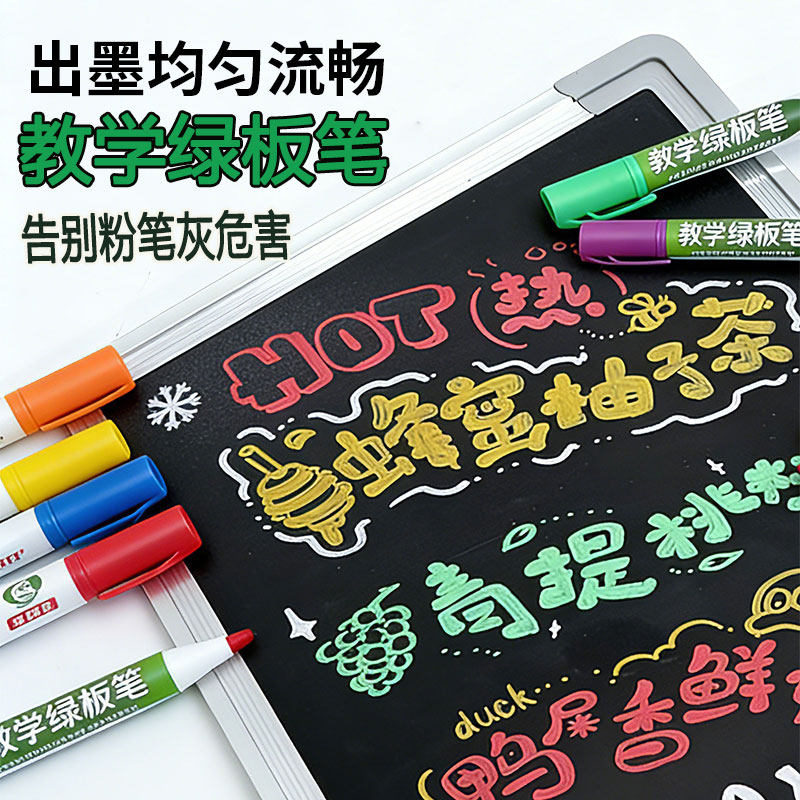 📚 教学绿板笔可擦液体无尘粉笔可加墨白色彩色涂鸦画笔黑板报水溶性教学师写字板画板粉笔儿童专用亚克力荧光笔