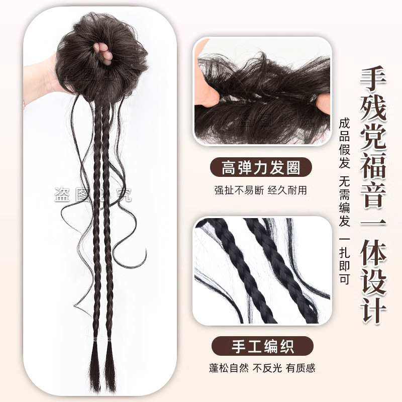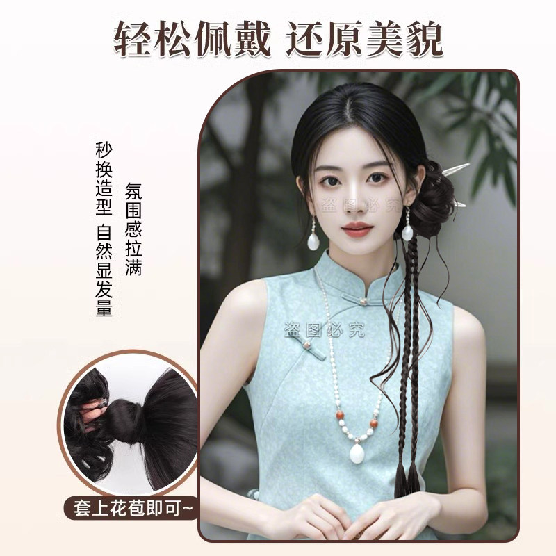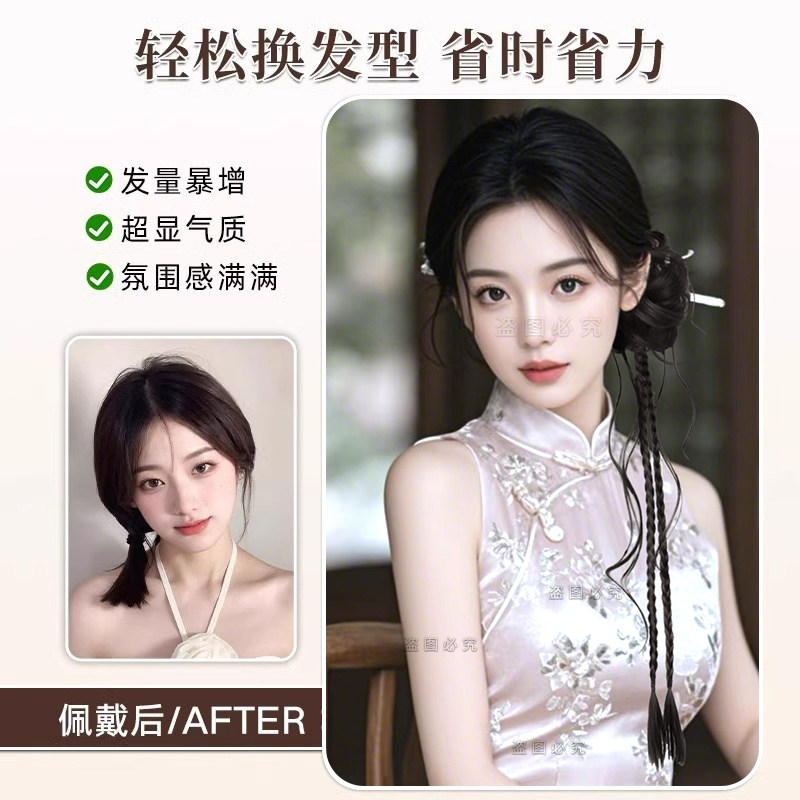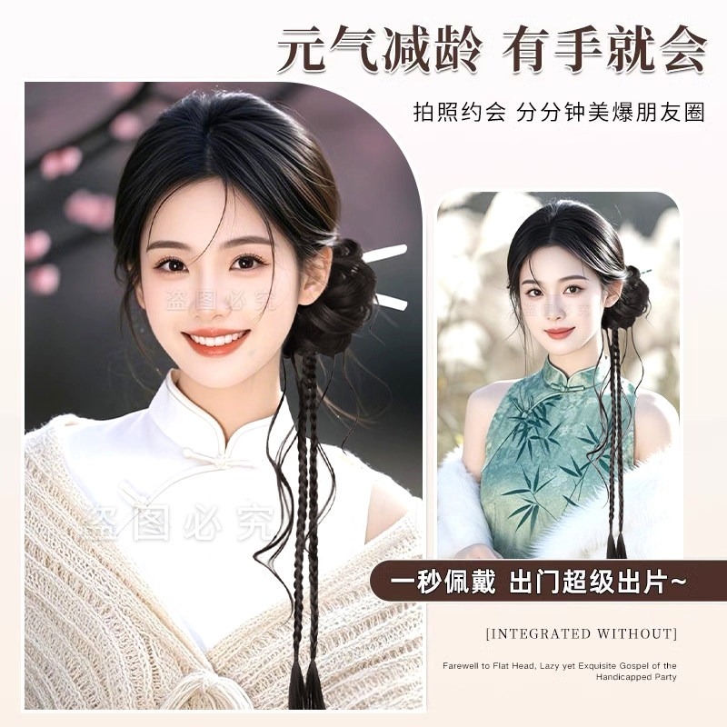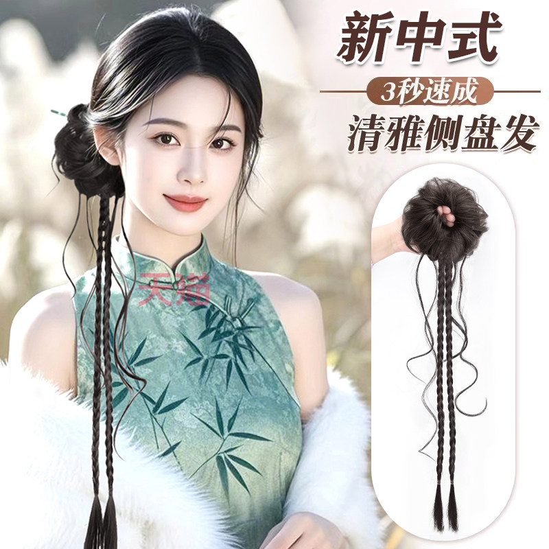 💥惊艳!新中式花苞龙须麻花辫假发圈古装一体式侧扎旗袍盘发造型,券后仅需7.8💰