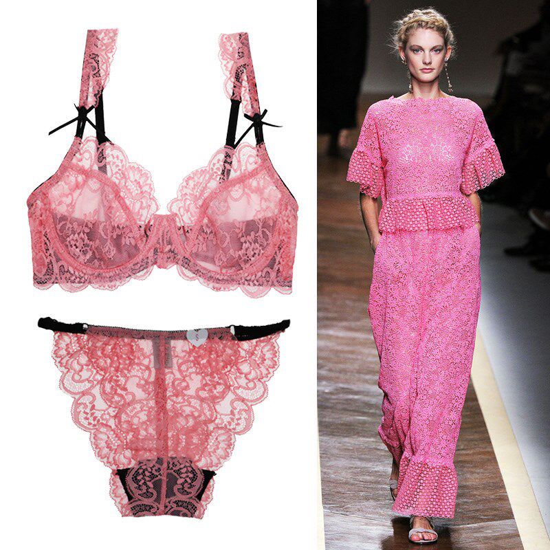 📚 E杯大码内衣文胸套装95d胖mm大胸显小超薄款蕾丝性感不聚拢胸罩夏