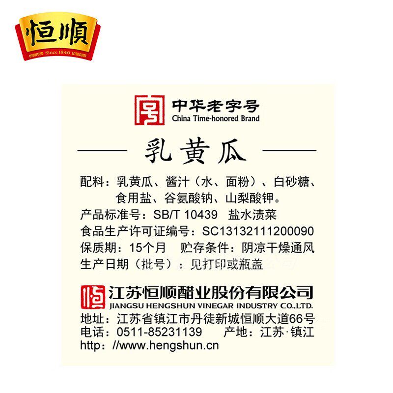 📚 镇江特产恒顺酱菜乳黄瓜脆黄瓜条稀饭搭档玻璃瓶装整箱375g*12瓶