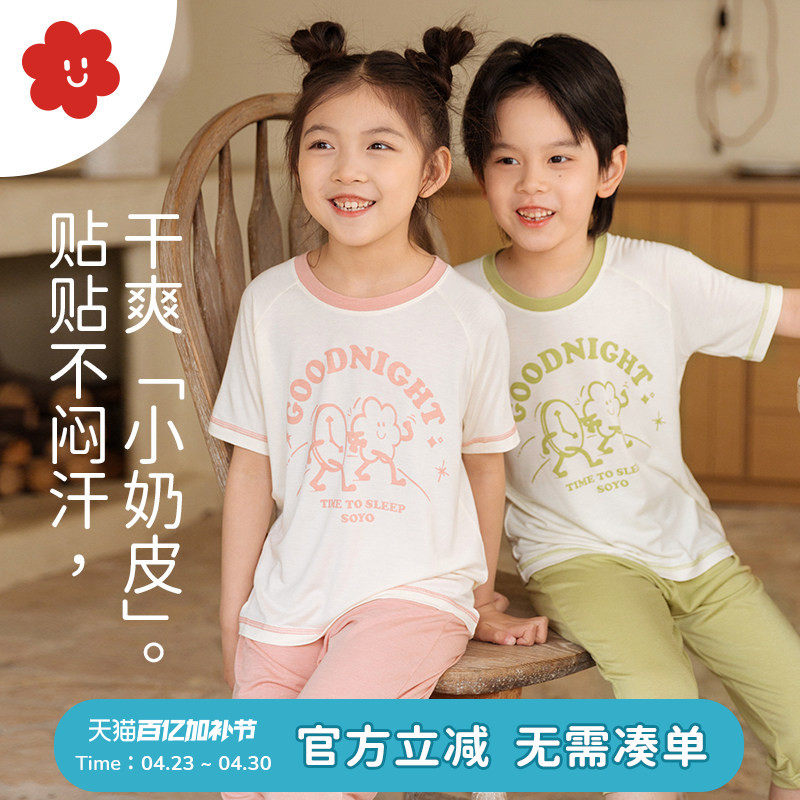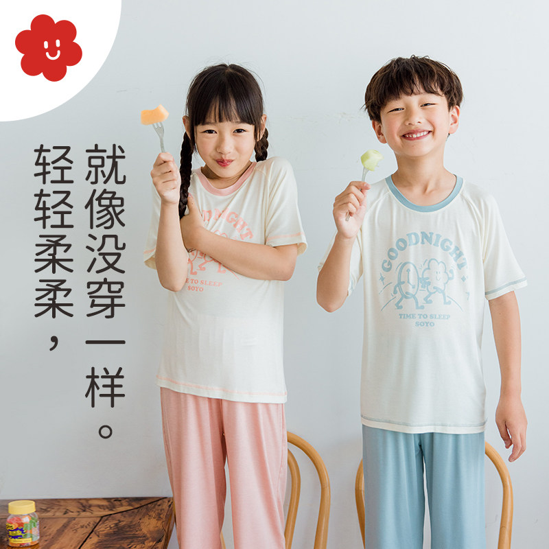 📚 soyo舍予良仓儿童睡衣夏季男童家居服女童套装宝宝短袖睡裤空调服