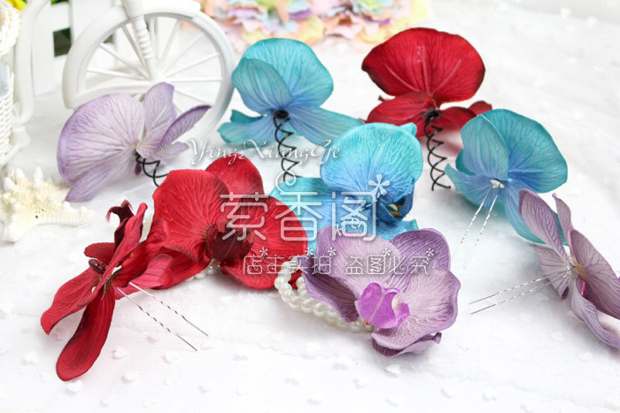 📚 新款沙滩度假波西米亚蝴蝶兰边卡胸针手链饰品头饰女头花螺旋簪子