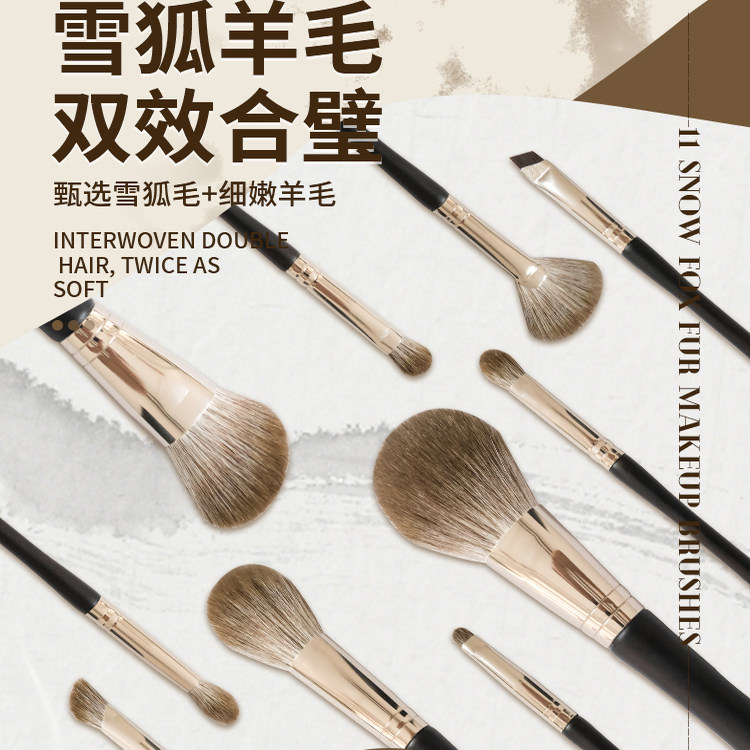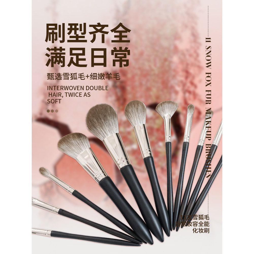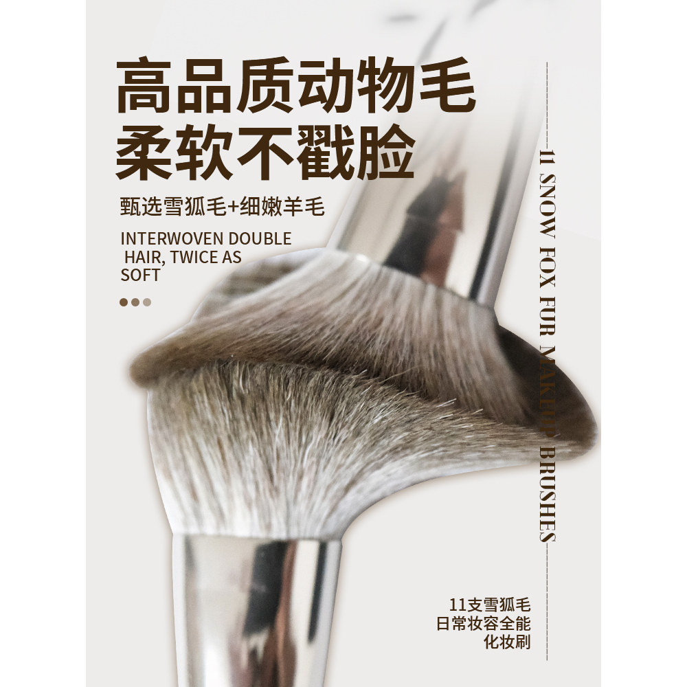 📚 目南鹿邑11支雪狐毛化妆刷套装新手眼影腮红散粉动物毛