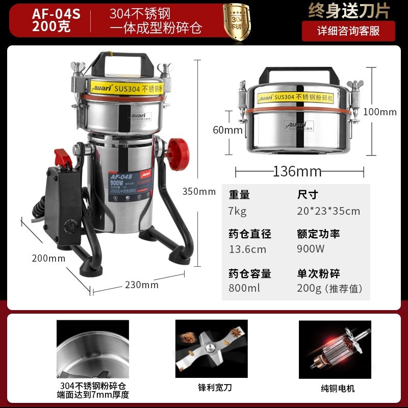 📚 Auari奥力中药材粉碎机中药专用机超细研磨机三七磨粉机商用打粉