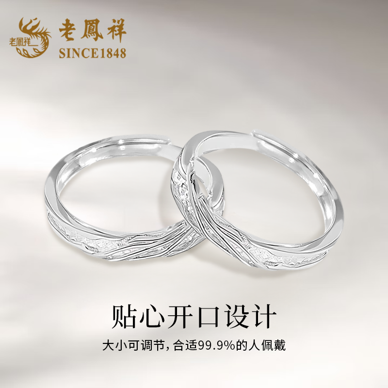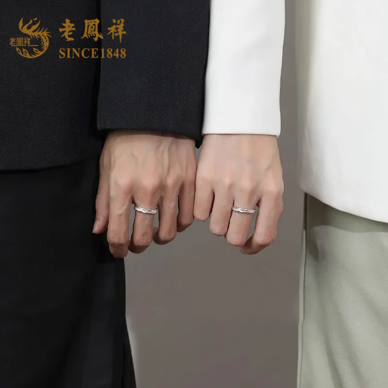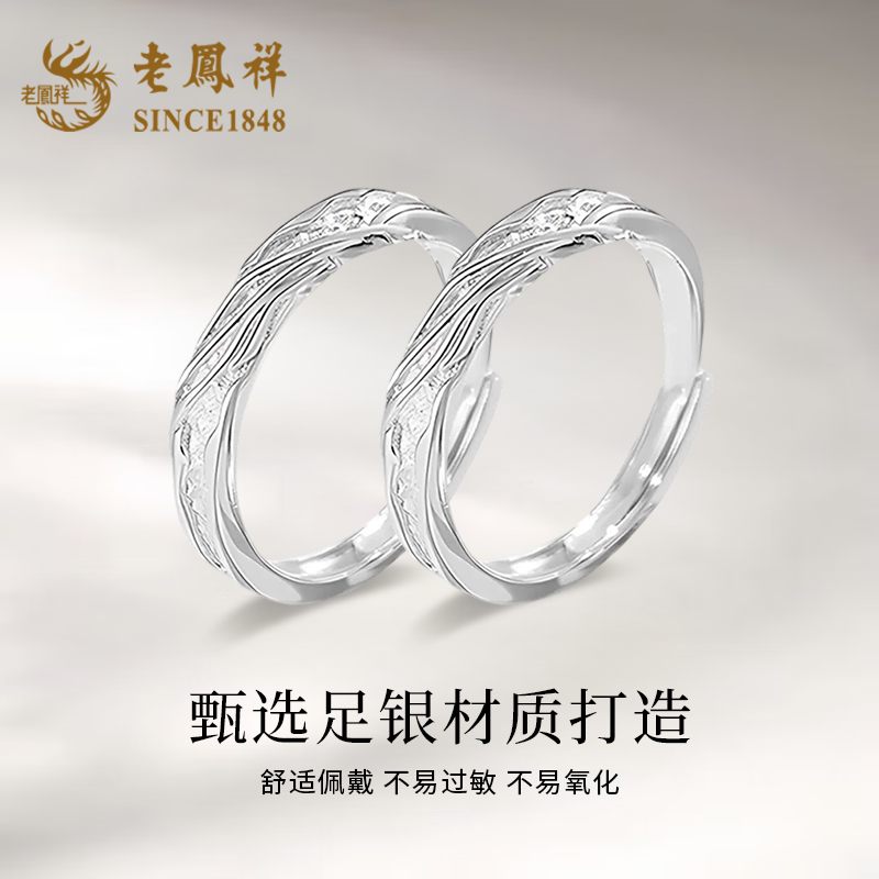 📚 老凤祥S999足银南风情侣戒指男女款生日指环轻奢设计感情侣对戒