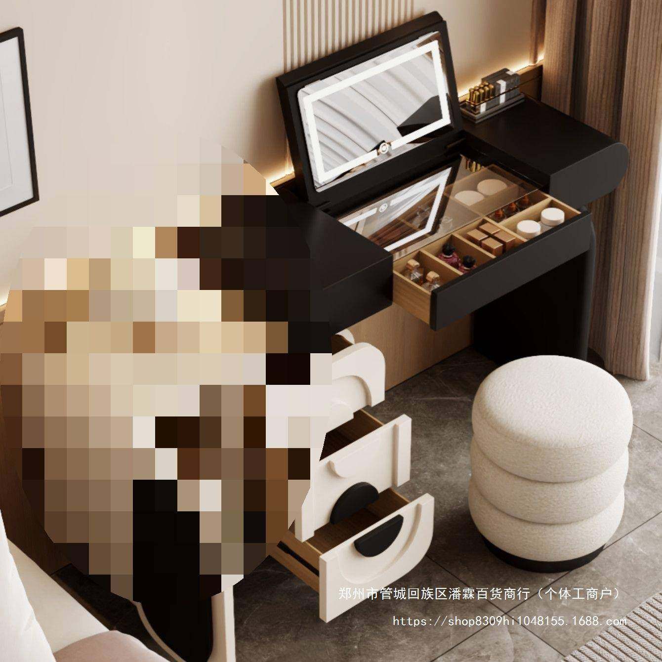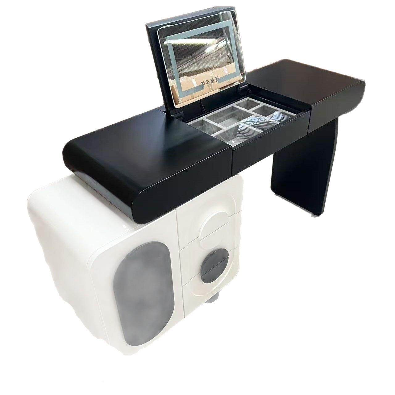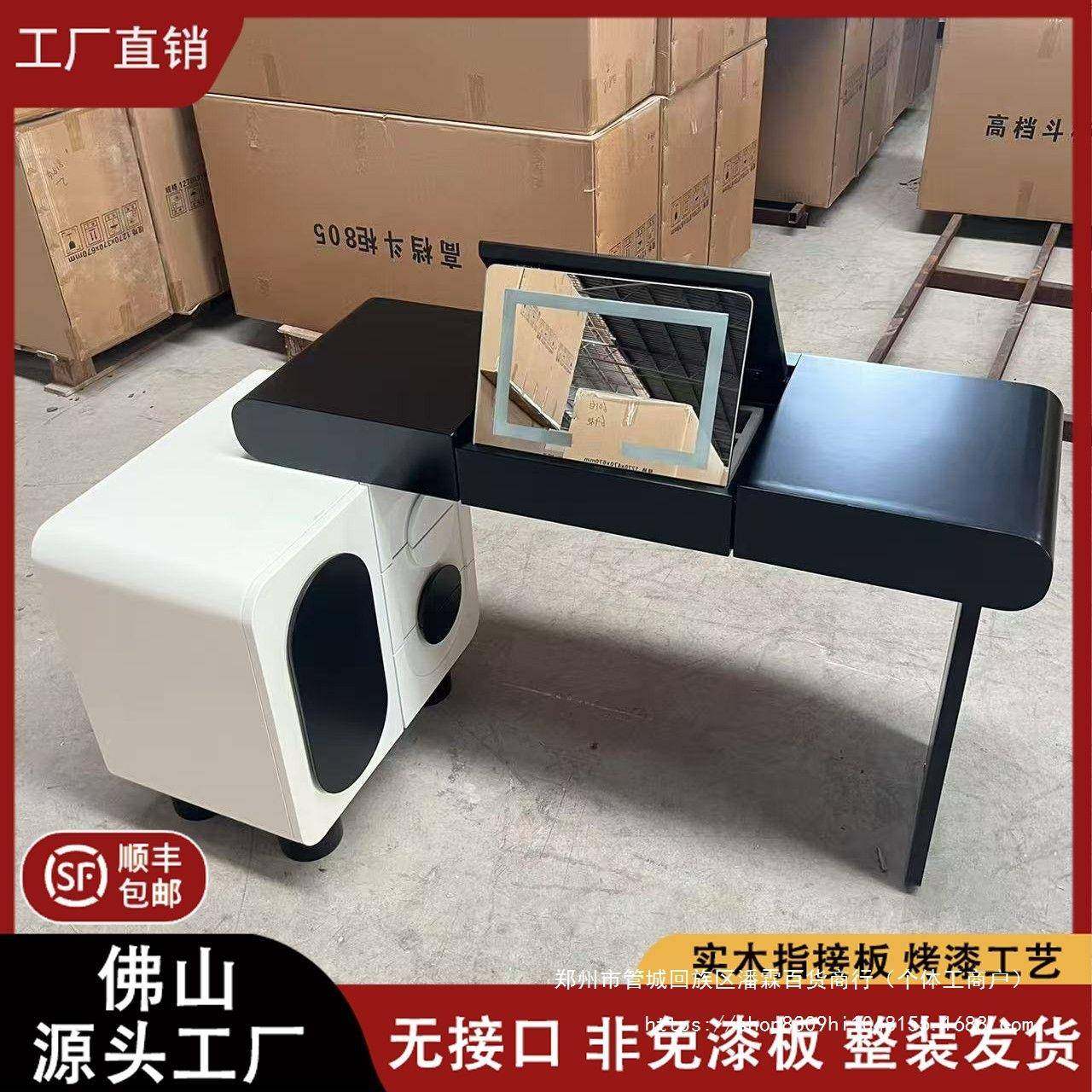 📚 全木烤台漆实梳妆黑白熊猫翻盖化妆桌室奶油风斗ABL柜一体卧新款