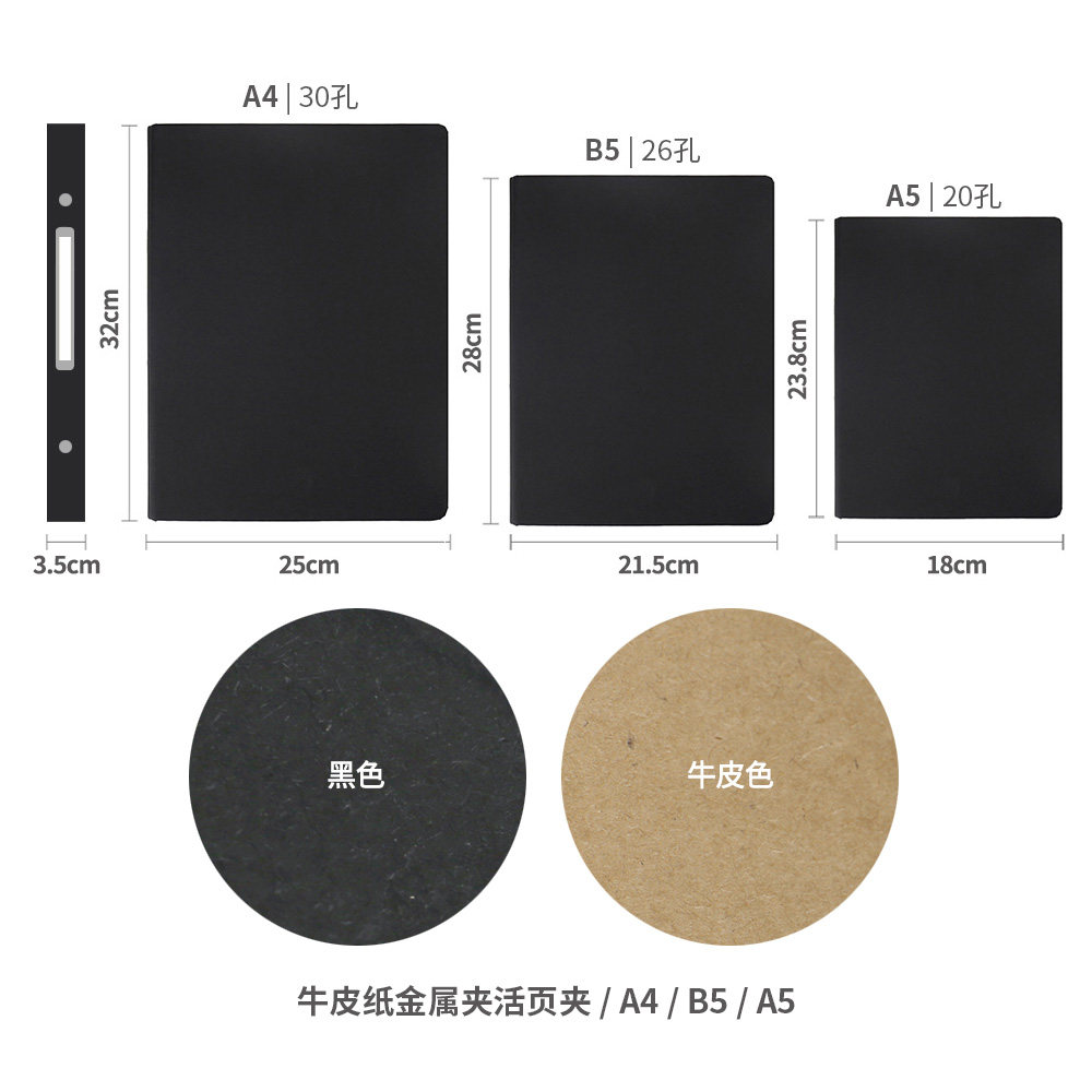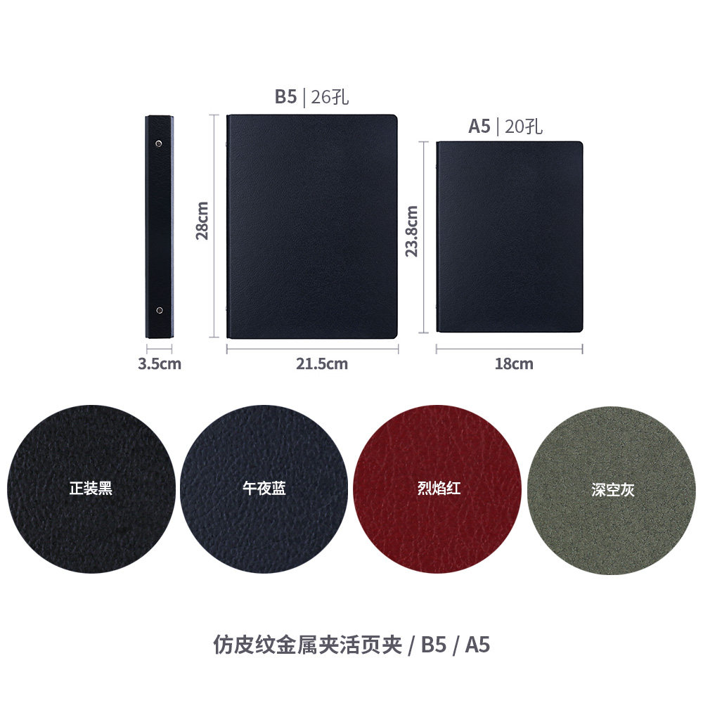 📚 道林活页本A4金属夹A5外壳B5企业定制LOGO笔记本20可拆卸纸26孔30