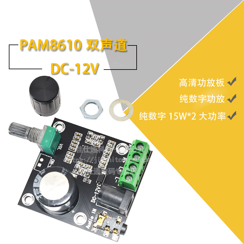 📚 PAM8610双声道12V高清功放板 纯数字功放 15W*2 大功率