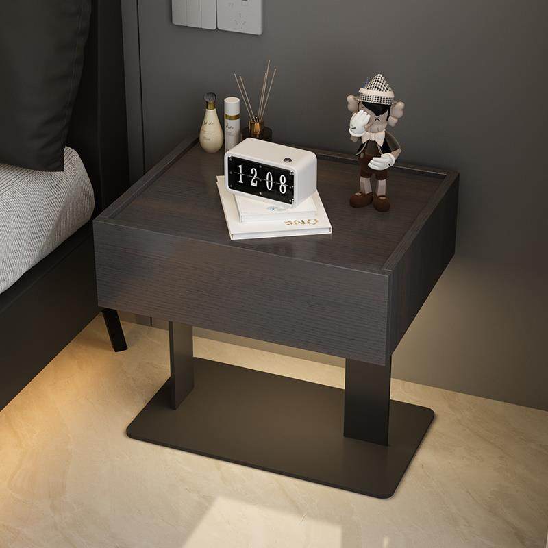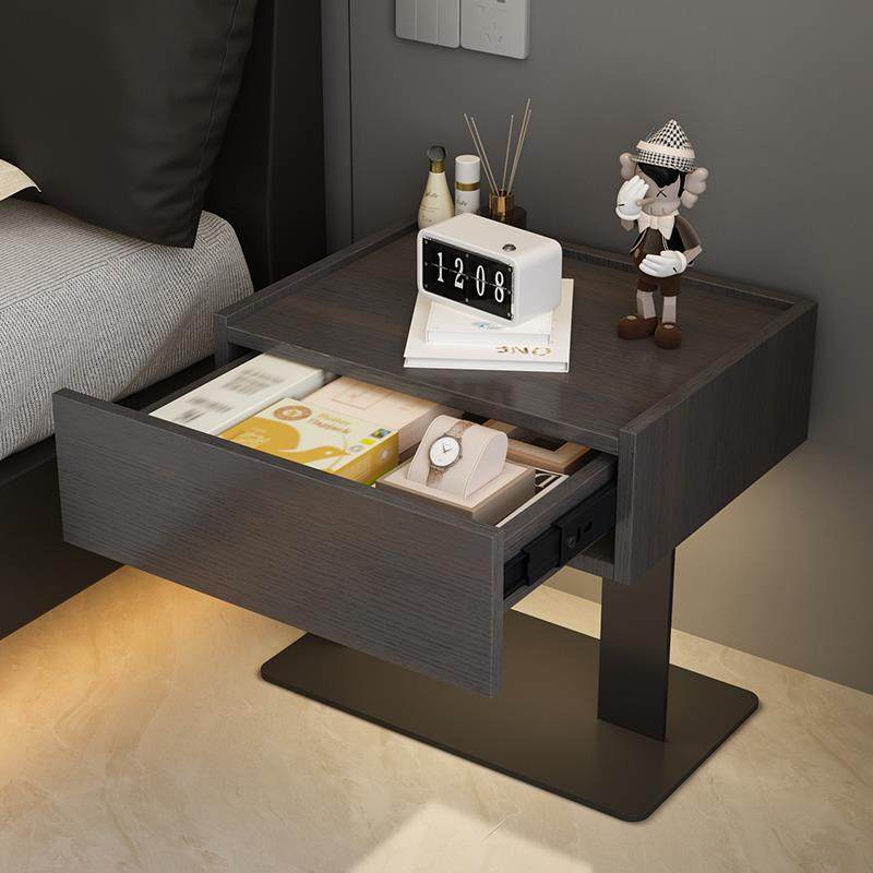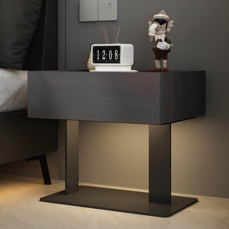 📚 卧室实木床头柜创意碳素钢底座床边柜意式极简悬浮储物柜感应灯