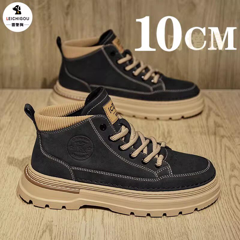 📚 厚底内增高鞋男10cm冬季加绒男士休闲马丁靴男款潮牌耐磨工装板鞋