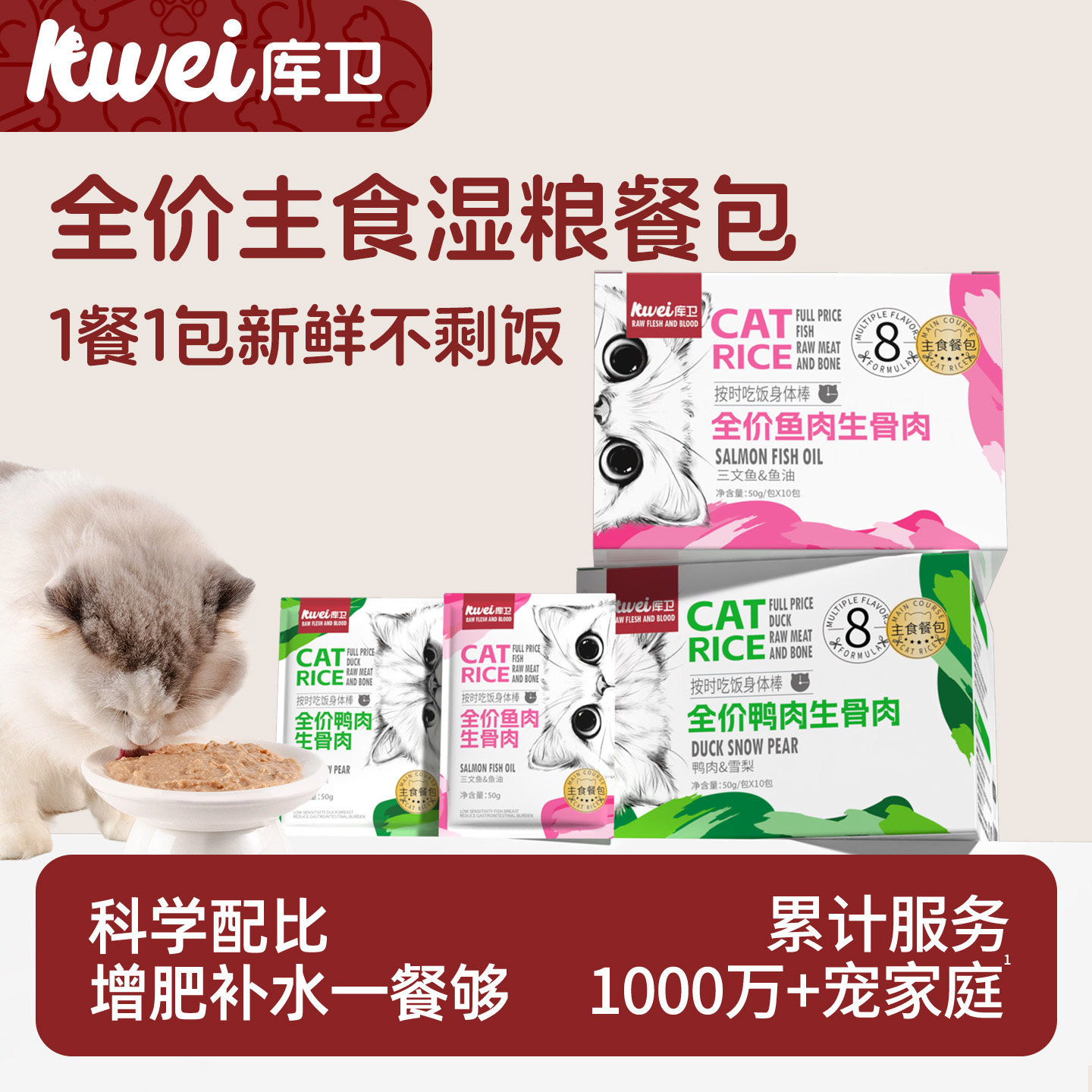 📚 库卫主食猫饭生骨肉餐包猫咪全价湿粮营养增肥猫粮成幼猫罐头湿粮