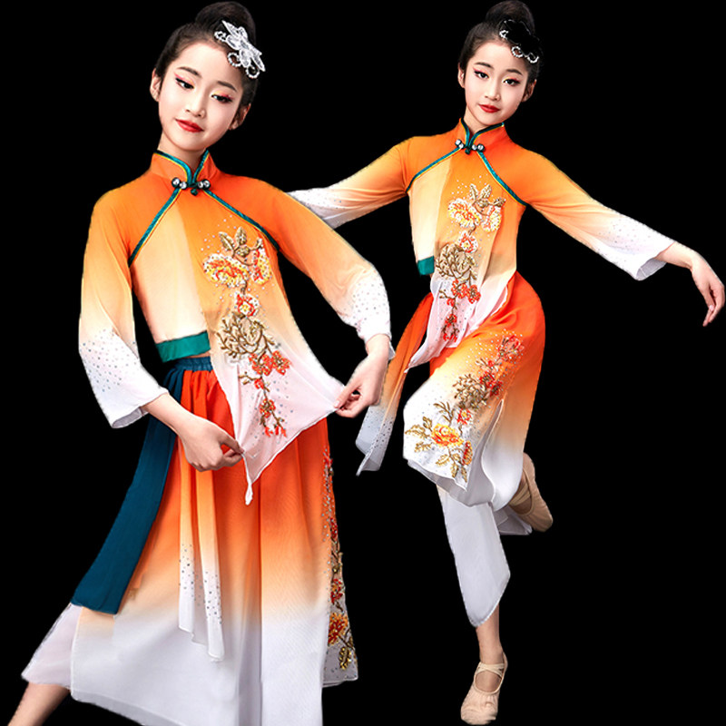 📚 新款儿童秧歌服演出服胶州秧歌女童东北手绢扇子舞斗笠舞渔梦渔阳