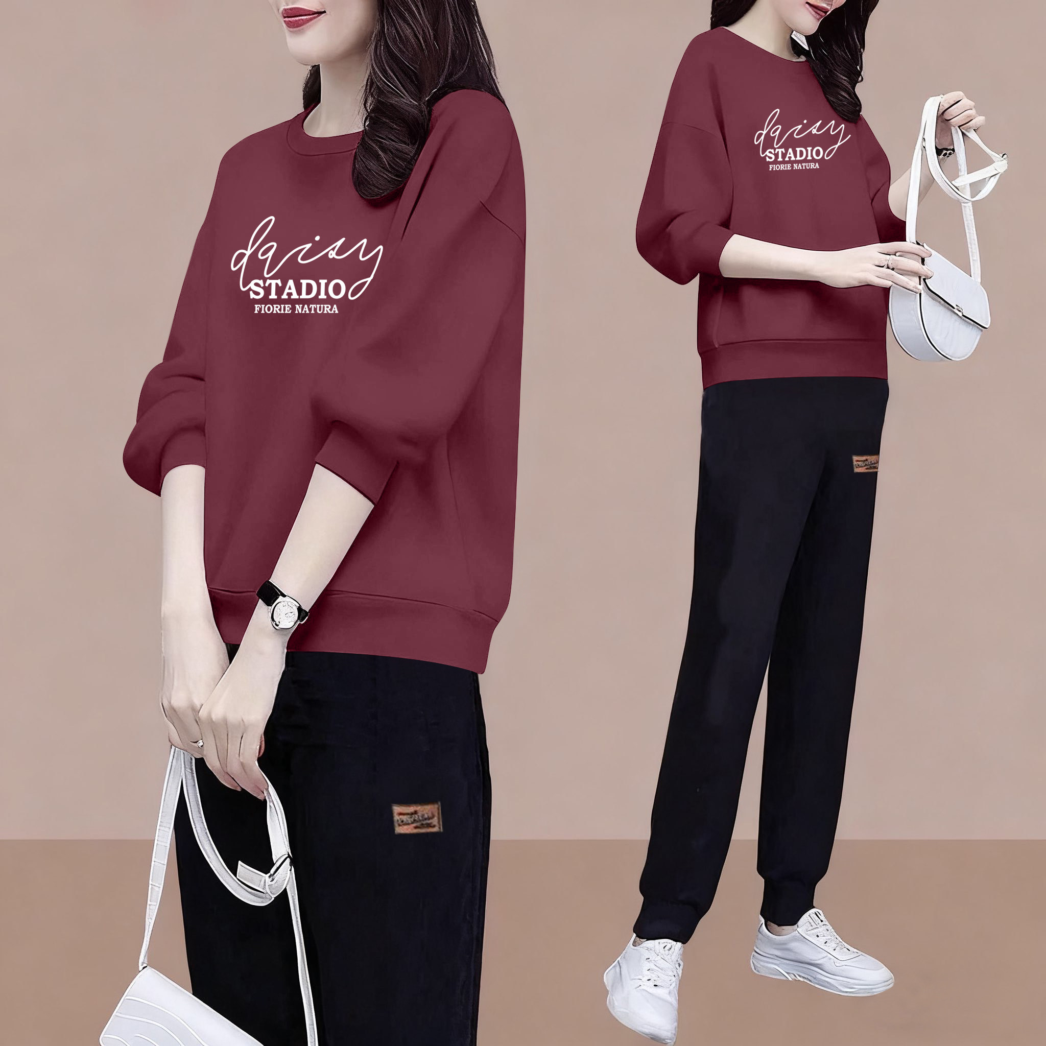 📚 品牌外贸清仓纯棉秋冬运动休闲套装女气质时尚宽松卫衣卫裤两件套