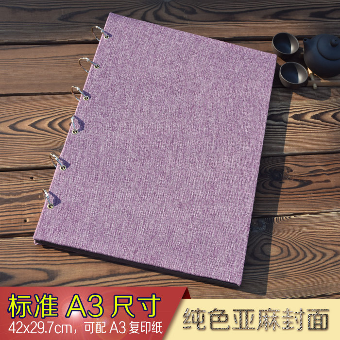 📚 标准A3纯亚麻布面活页素描/速写/剪报/相册/作品/记事/涂鸦马克笔
