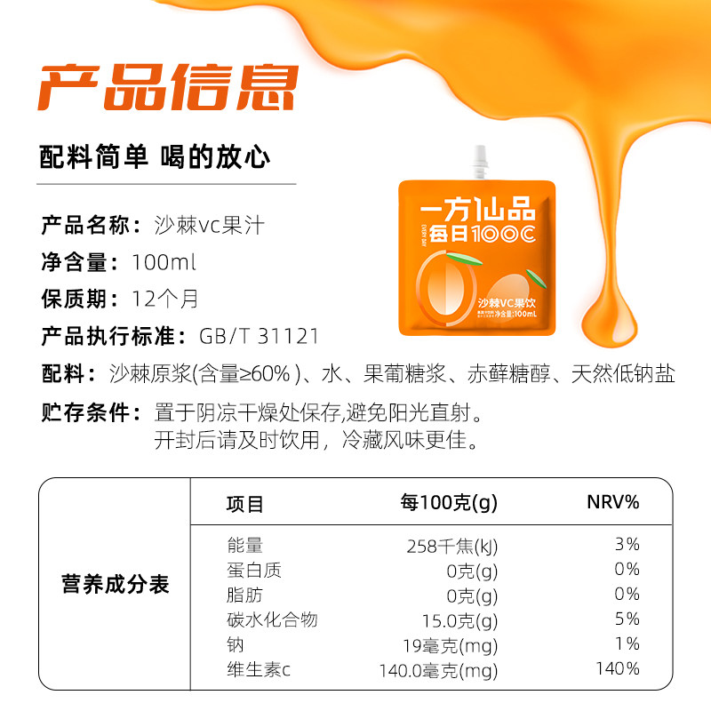 📚 一方仙品沙棘VC果饮每日100C青海非提油小果沙棘果汁饮料官方正品