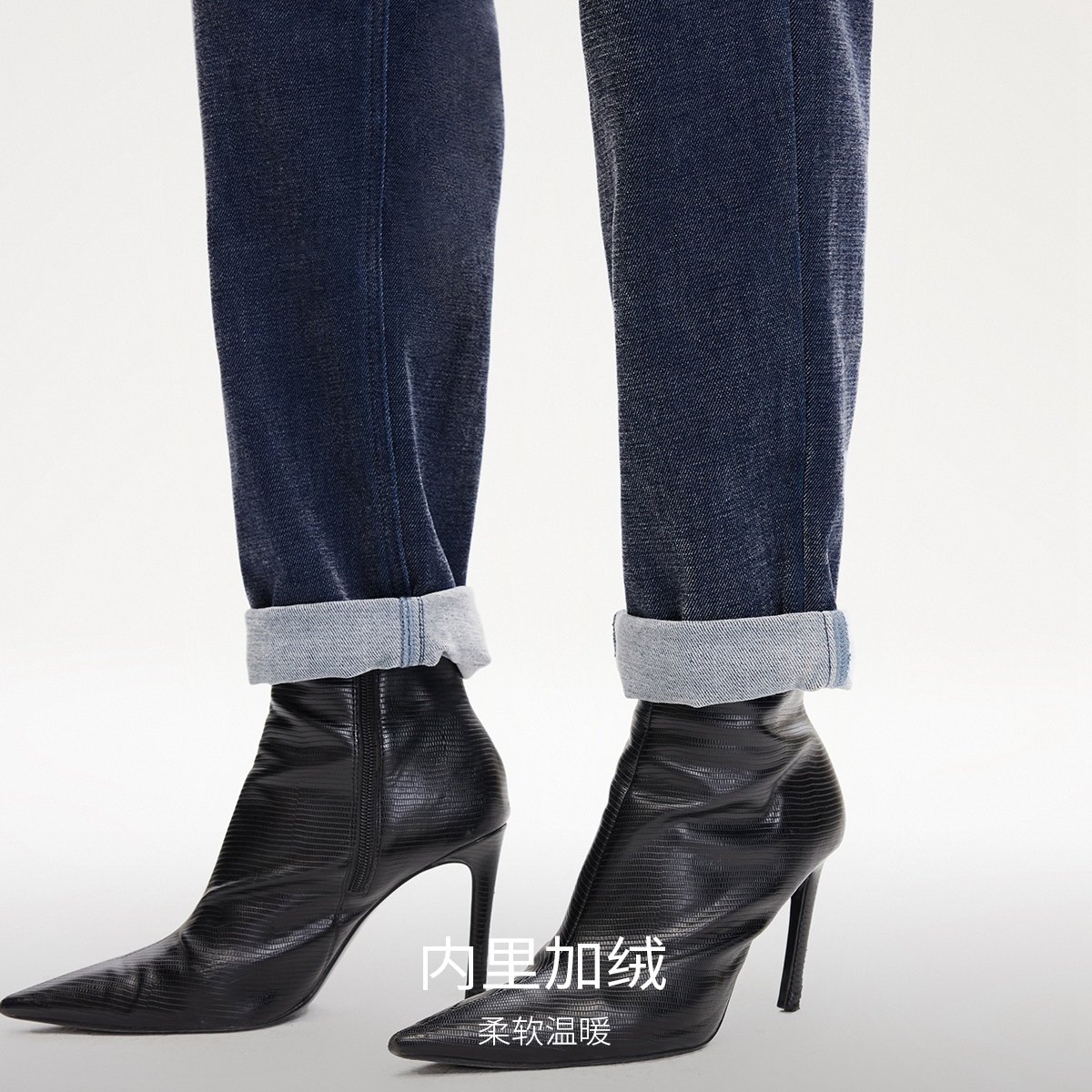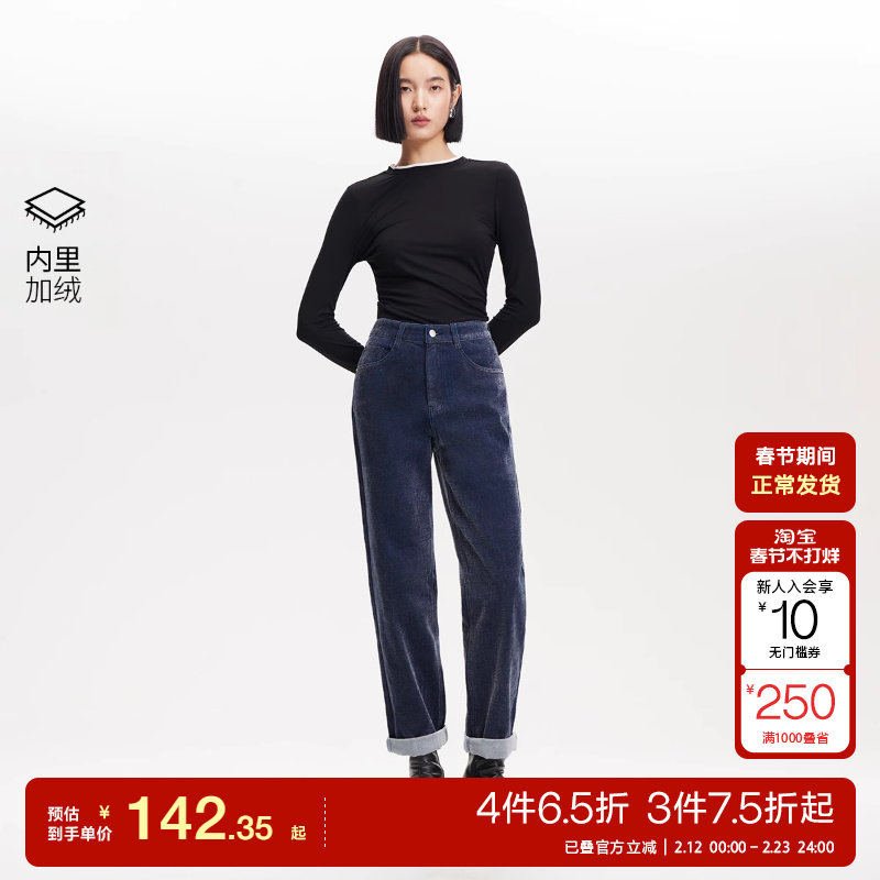 📚 tq区绫致VeroModa牛仔裤秋冬高腰九分裤薄绒松紧直筒裤柔软