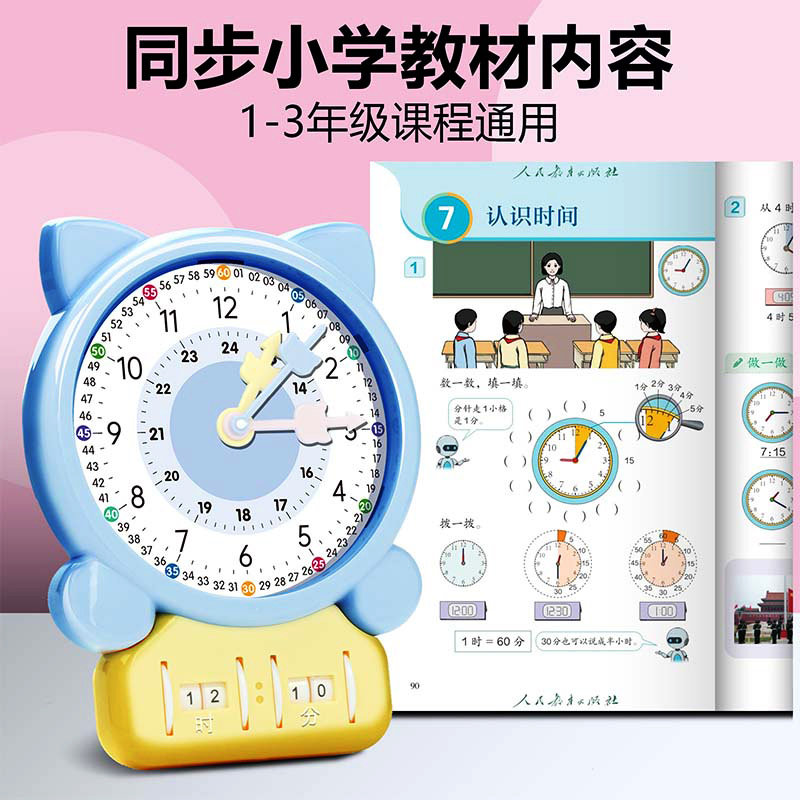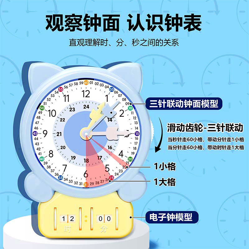 📚 钟表模型学习时钟教具三针联动二认识时间幼儿童闹钟小学生一年级