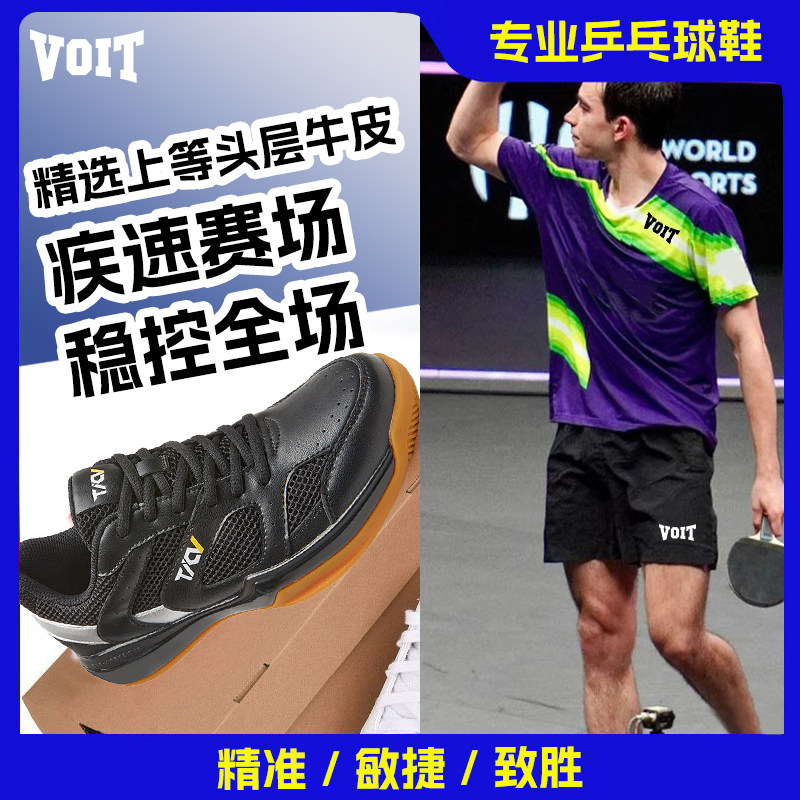 📚 沃特头层牛皮专业乒乓球鞋男透气旋转扣比赛羽毛网球运动鞋女夏季