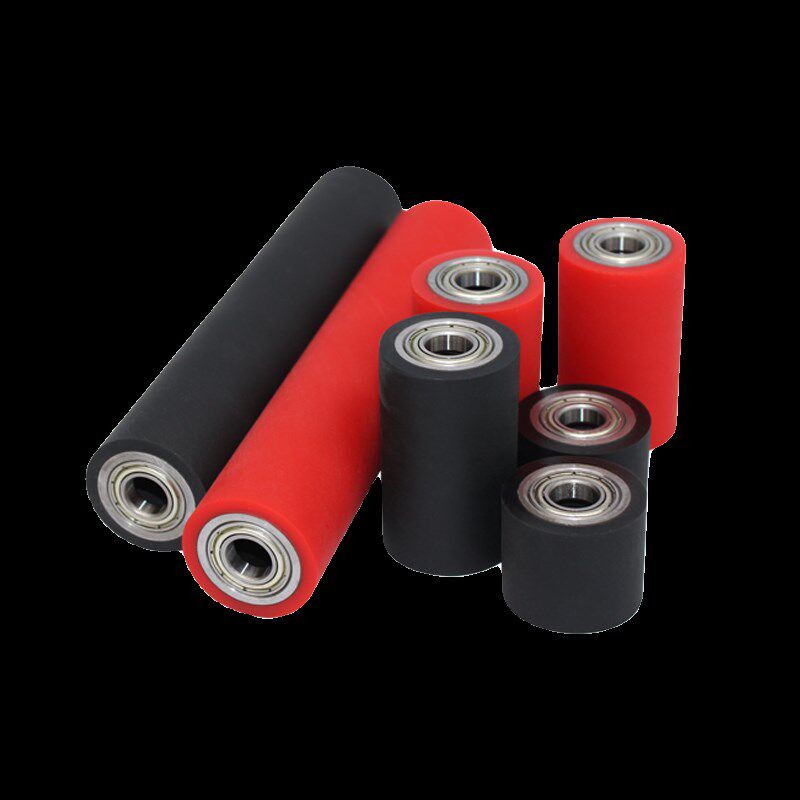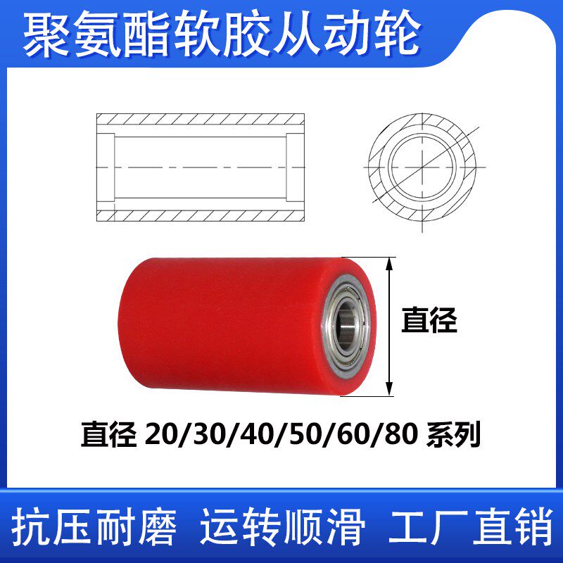 📚 红色50度聚氨酯包胶滚筒无动力滚轮软胶摩擦静音惰轮双轴承从动轮