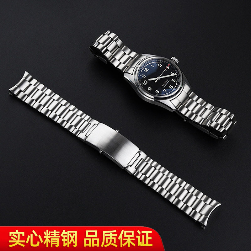 📚 适配浪琴先行者男钢带L3.811.4系列实心弧口不锈钢手表带配件22mm