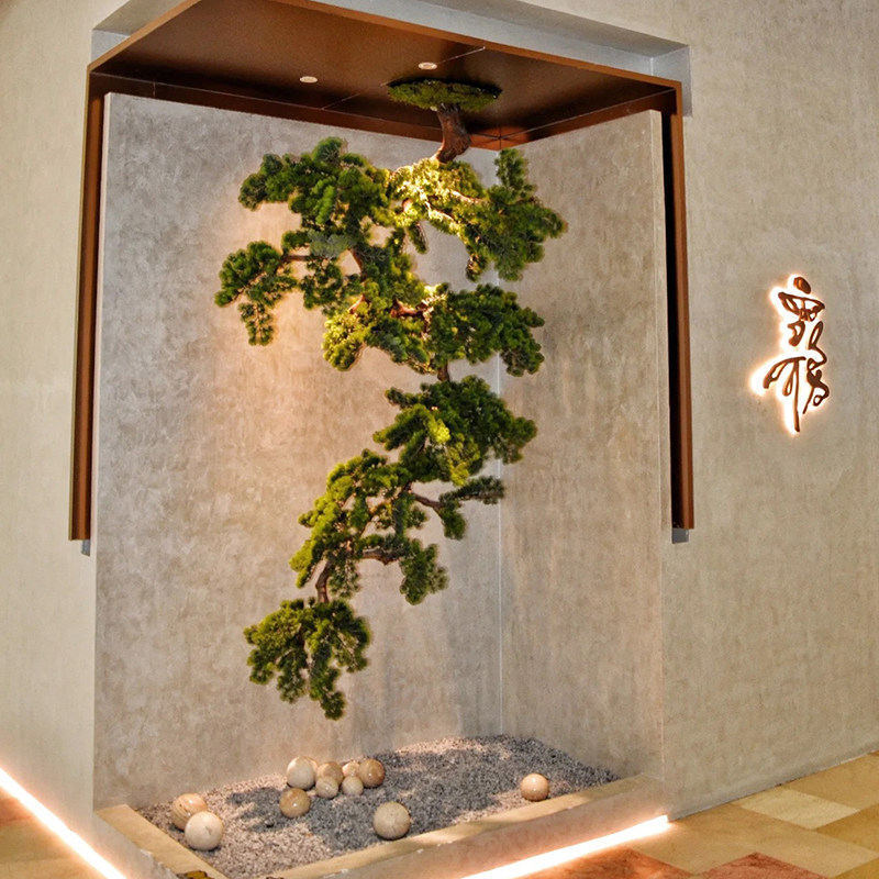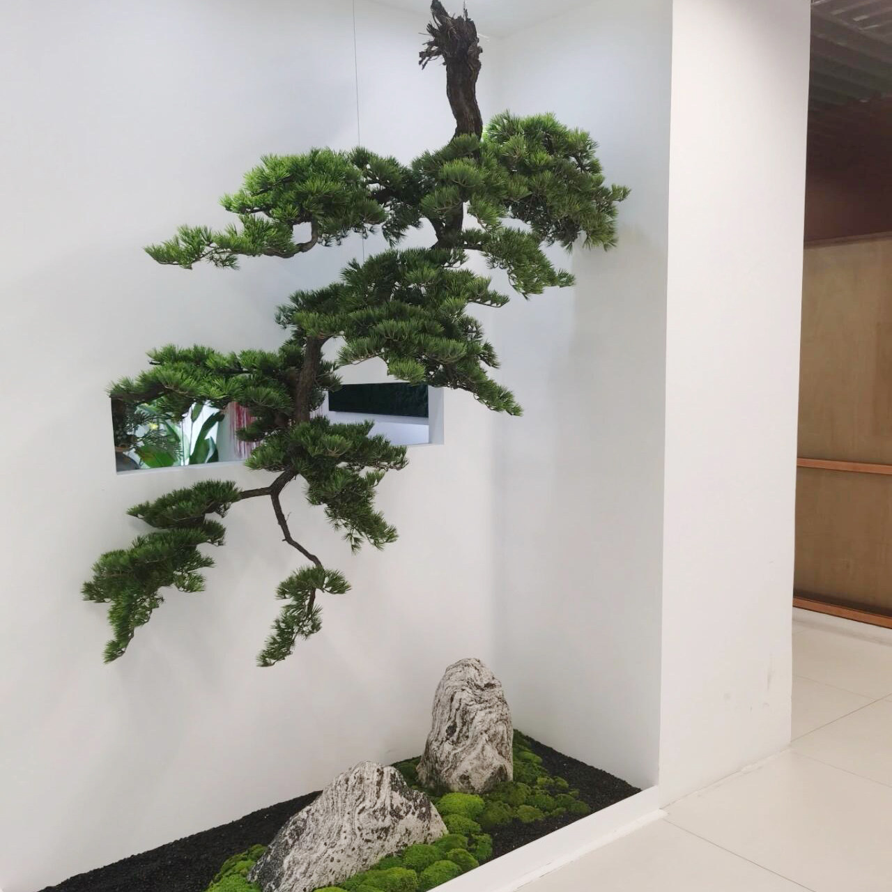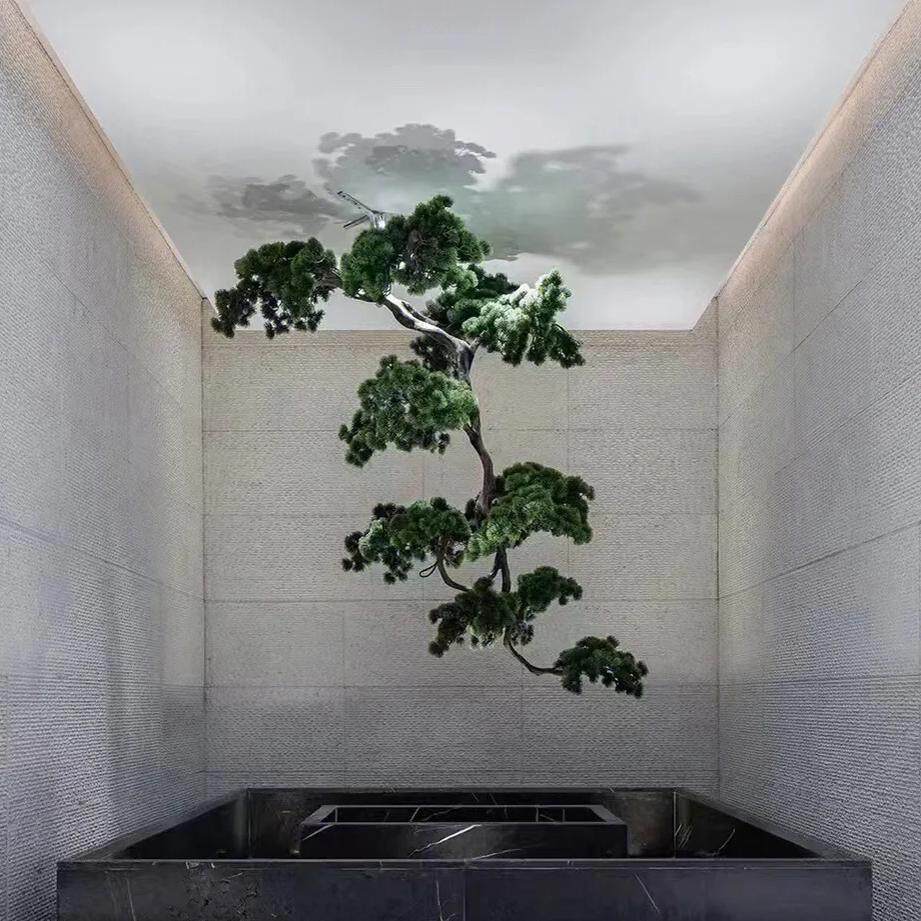 📚 悬挂松树倒挂侧挂壁挂迎客松悬崖式松枝新中式景观玄关造景绿植