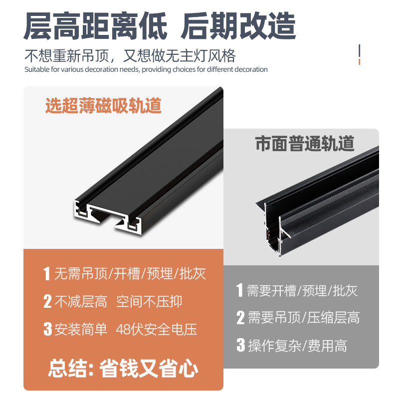 📚 超薄明装磁吸轨道灯家用客厅无主灯已接入米家APP智能格栅线条灯