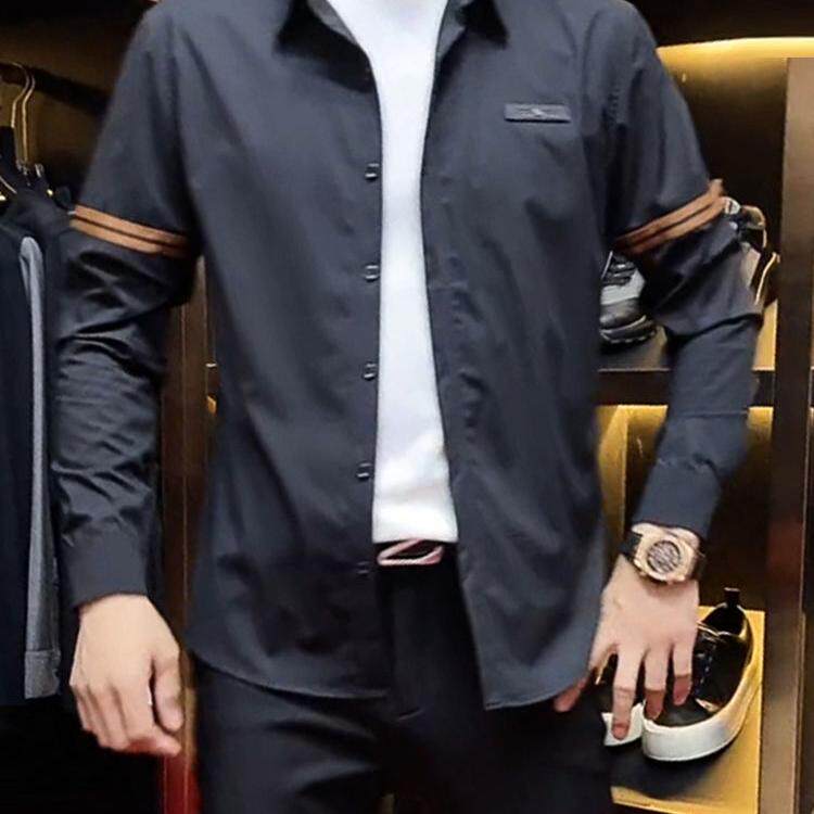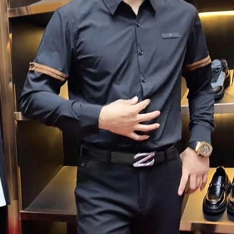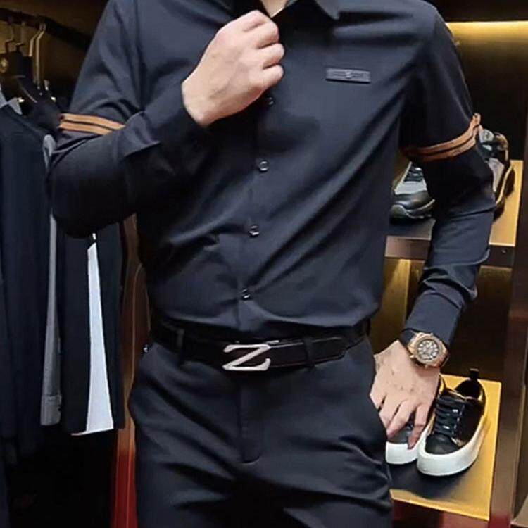 📚 轻奢时尚绅士商务休闲长袖衬衫男士潮牌高端简约个性条纹翻领上衣