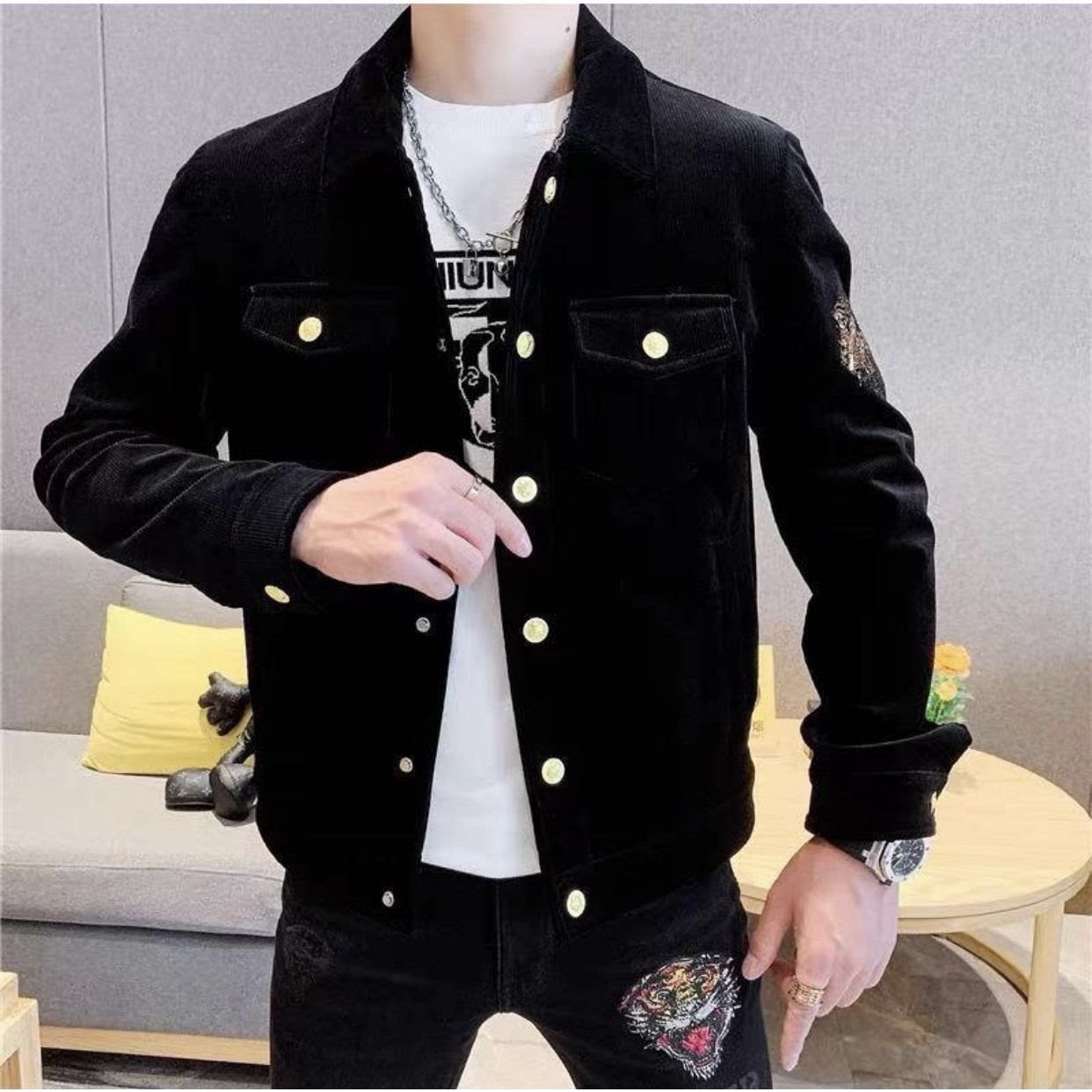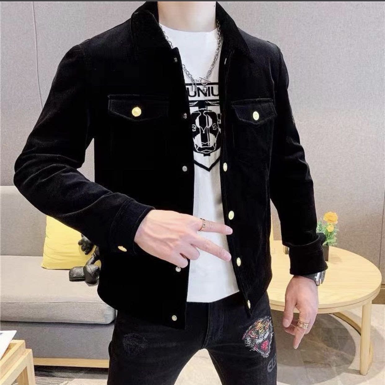 📚 欧洲站新款英伦风潮牌纽扣夹克男士秋冬季高端气质翻领上衣外套