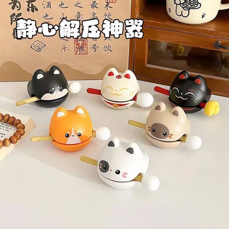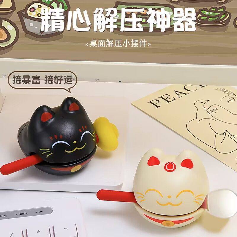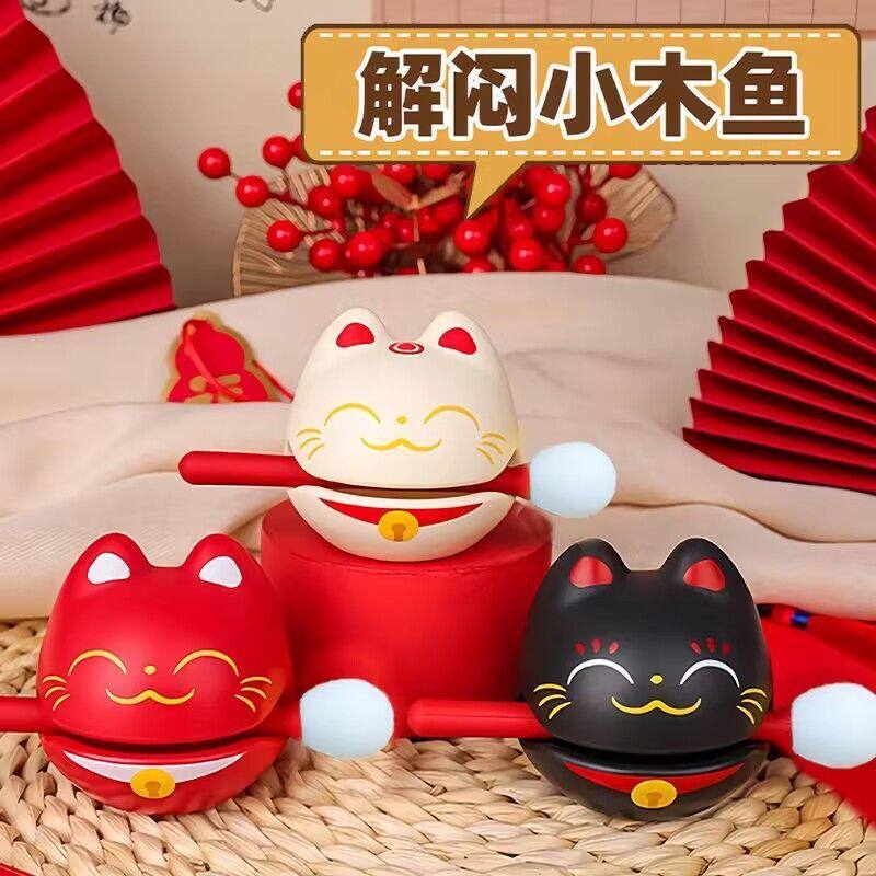 📚 招财猫木鱼桌面摆件可爱解压玩具耶诞节礼物送男生女生有趣的猫咪