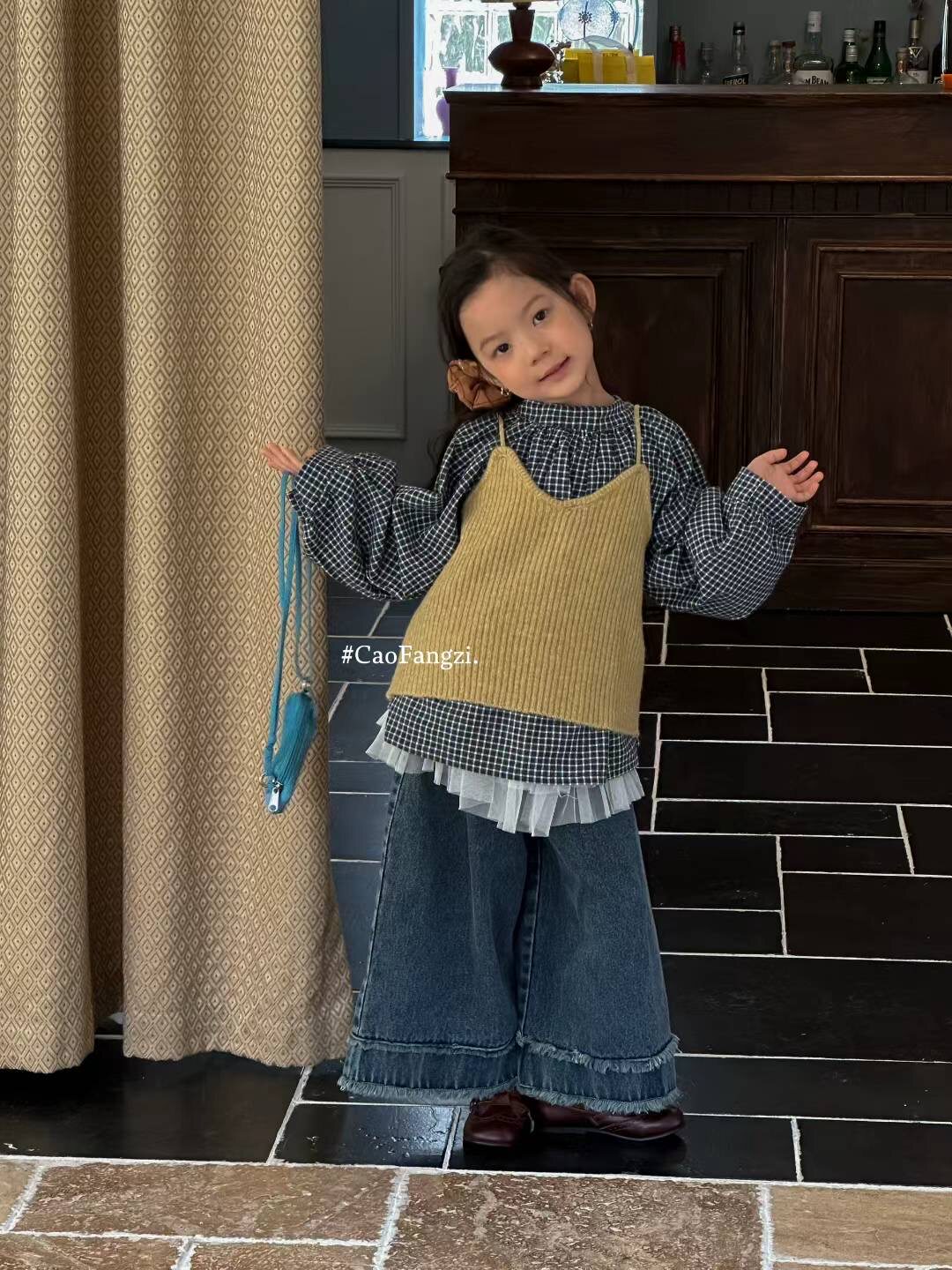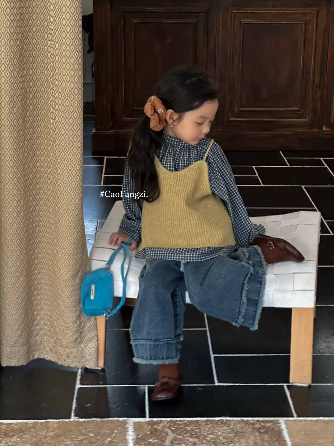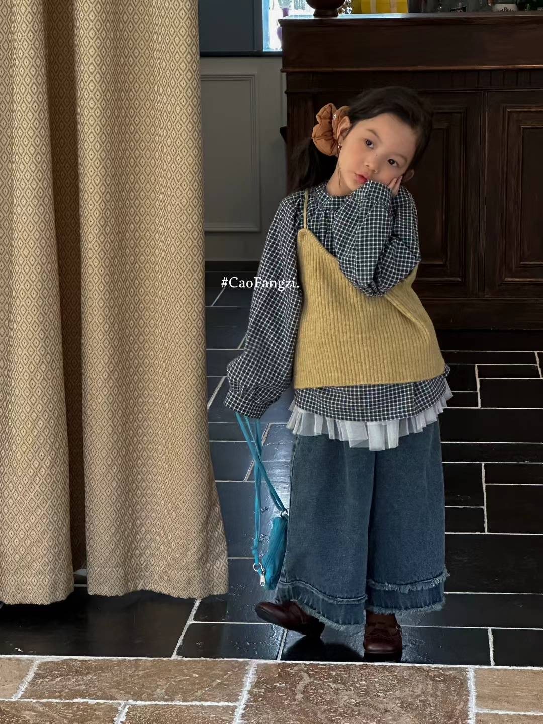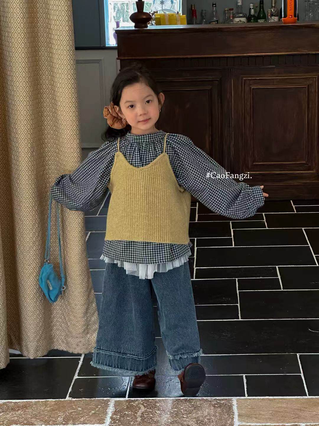 📚 草房子~25秋装新款女童格子衬衫马甲两件套25317牛仔阔腿裤25322