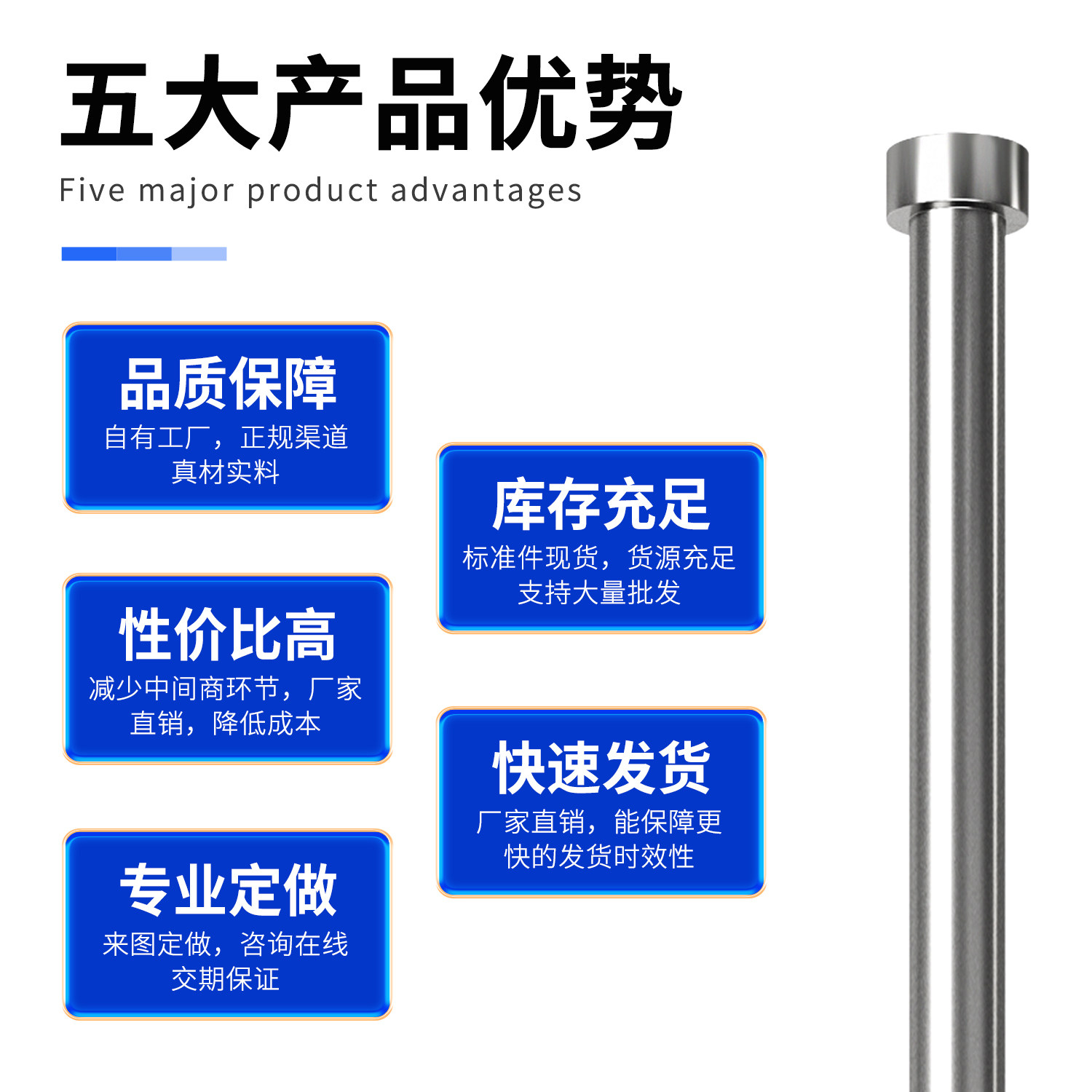 📚 国产SKD61全硬非标顶针顶杆1.1-5.9精密加硬轴承钢GCr15非标定做