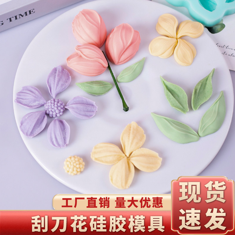 📚 韩式裱花模具硅胶刮刀花格桑花花瓣铃兰花向日葵蝴蝶巧克力母亲节
