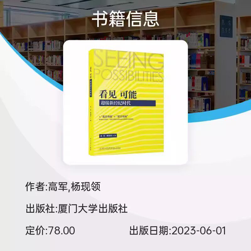📚 看见可能 迎接新经纪时代高军杨现领贸易经济房地产经纪行业卖方市场买房市场生态建设基层从业人员厦门大学出版社