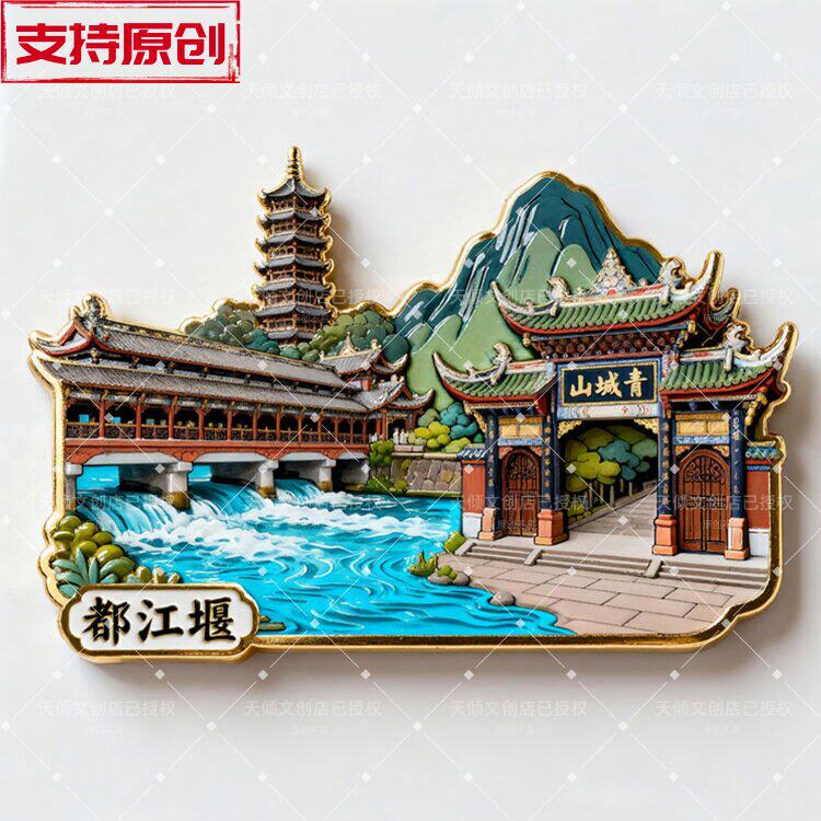 📚 【都江堰】金属磁吸浮雕冰箱贴旅游景点纪念文创伴手礼物装饰门贴