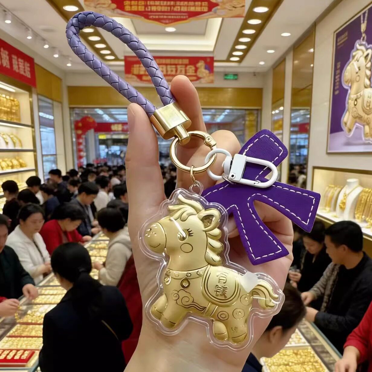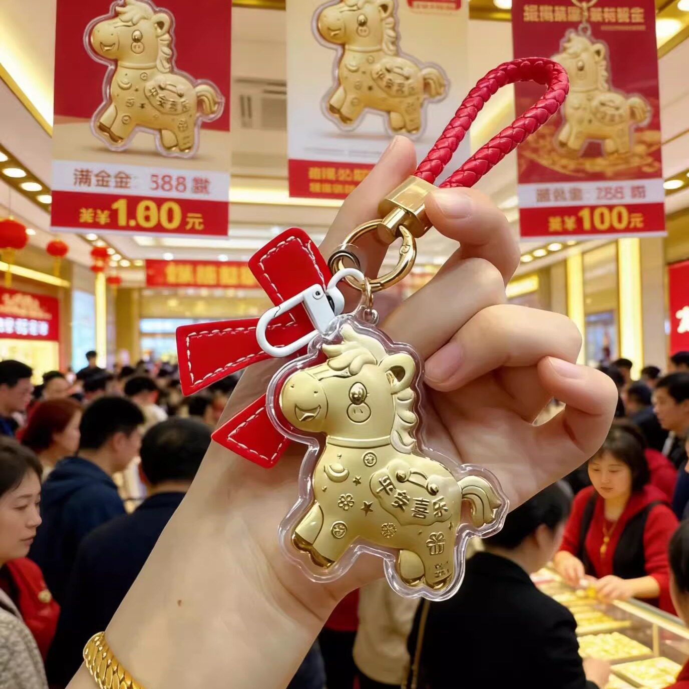 📚 水贝黄金马上有钱钥匙扣足金999蝴蝶结手机链包包挂件生肖马礼物