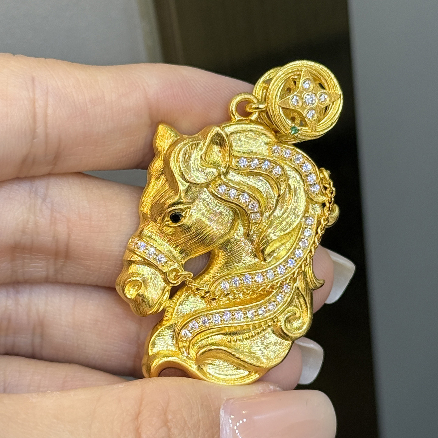 📚 吉盟珠宝999足金点钻挂件生肖马本命年古法黄金吊坠男女款新中式