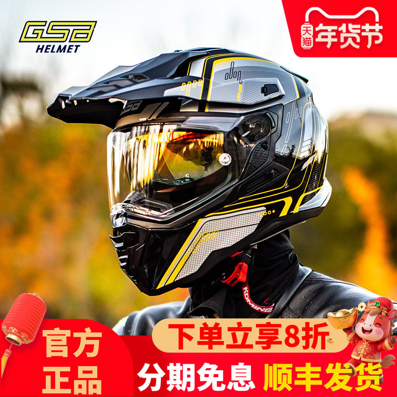 📚 GSB摩托车拉力盔双镜片头盔机车夏季透气男XP22摩旅长途越野全盔