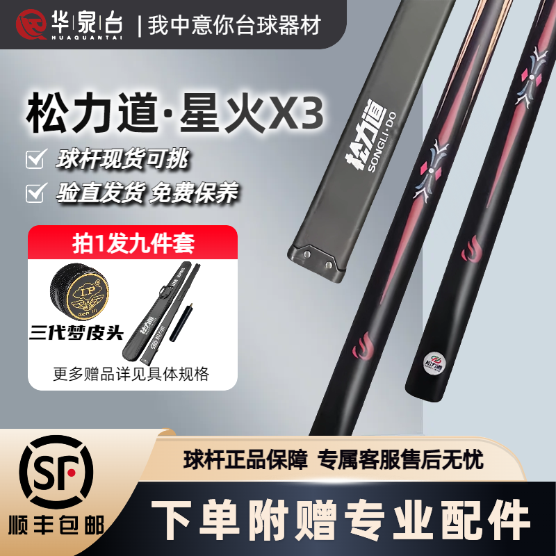 📚 松力道星火X3黑八小头杆免漆镶嵌手工杆一体杆台球桌球入门杆正品