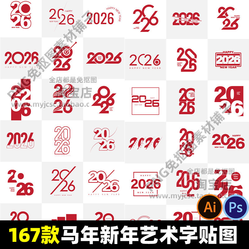 📚 2026年马年新年艺术字贴图海报装饰文件PS编辑AI矢量图打印喷绘包