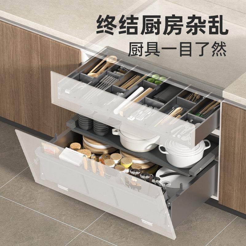 这款拉篮收纳盒采用了铝合金材质,精致且耐用。一眼望去,就能感受到它的简约大方,完全符合现代厨房的风格。而且,它的设计非常人性化,可以随心所欲地调整抽屉的大小和深度,满足各种收纳需求。👀