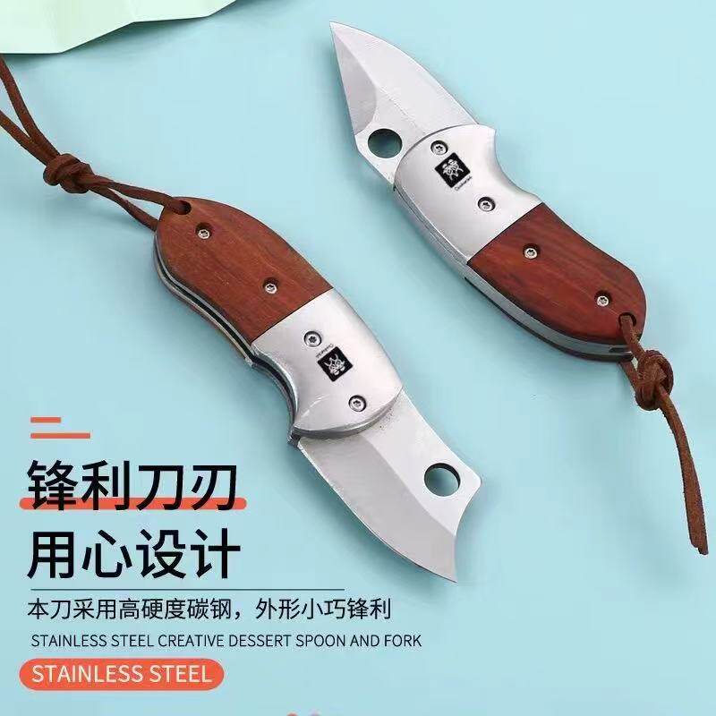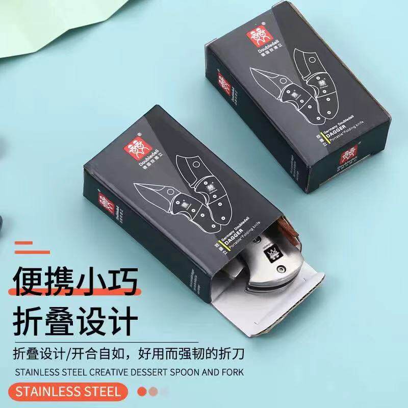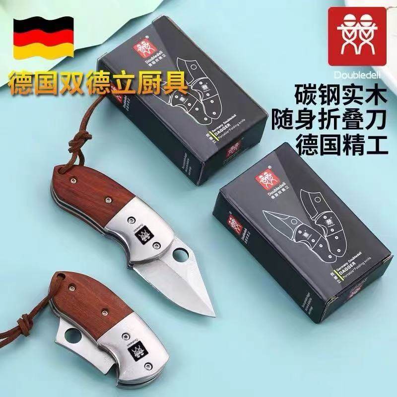 📚 德国DOUBLEDELI户外折叠刀迷你小刀子高硬度随身防身水果刀木柄刀