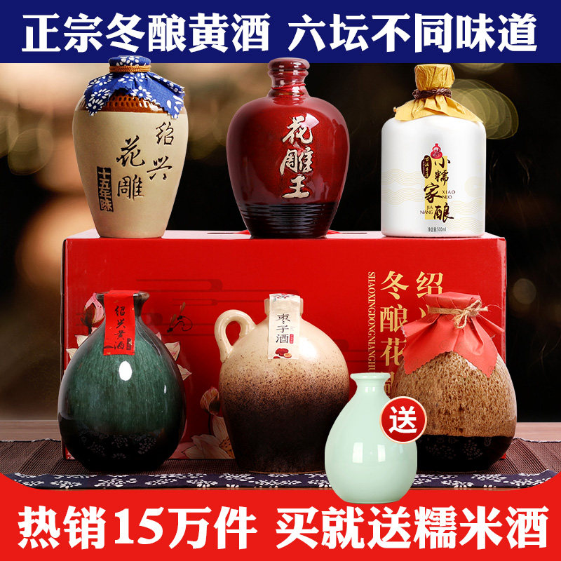 📚 绍兴黄酒女儿红七斤嫂六瓶不同味道花雕酒坛装糯米老酒整箱礼盒装