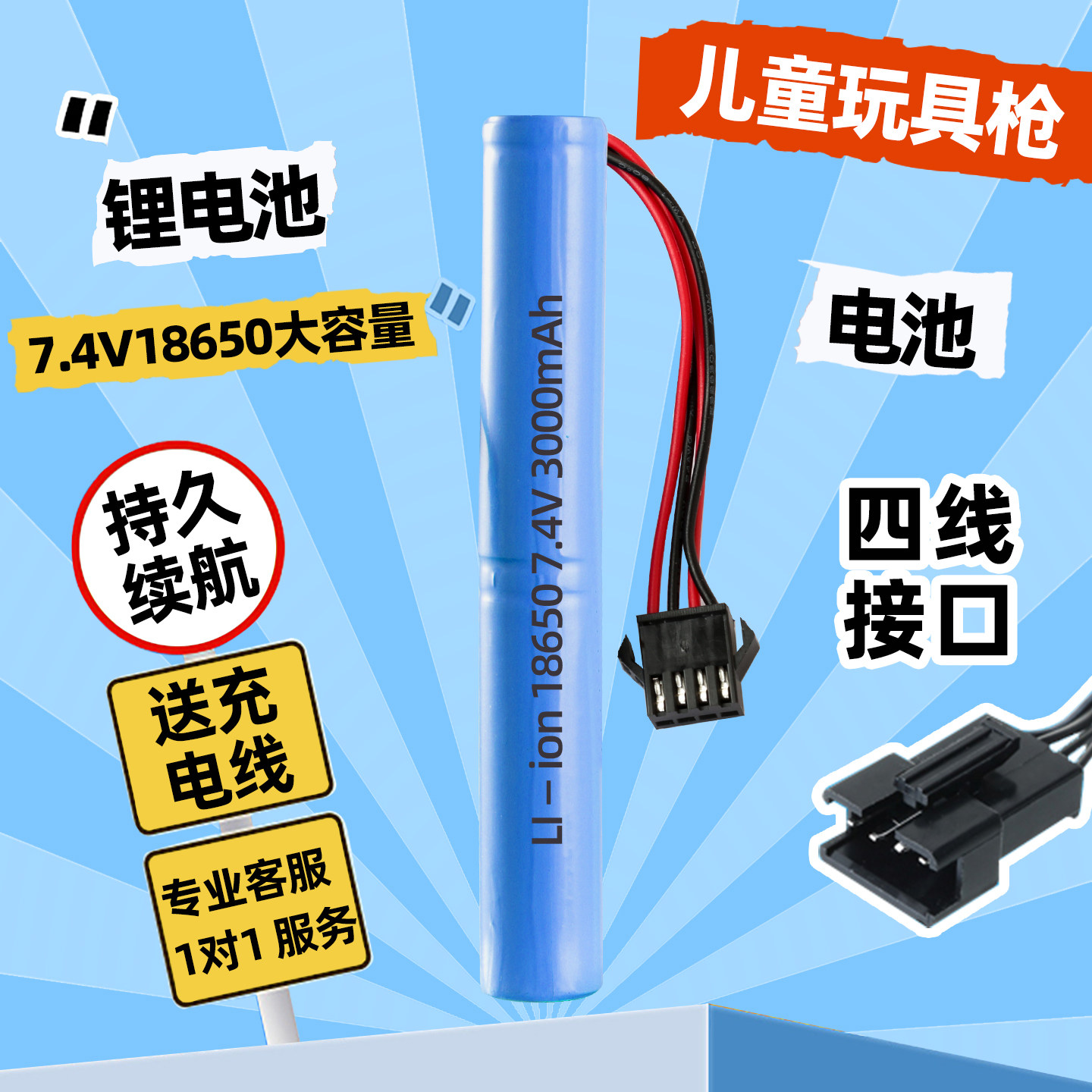 📚 玩具枪锂电池7.4V大容量18650软弹枪11.1V水枪锦明M4斯泰迪短剑2s