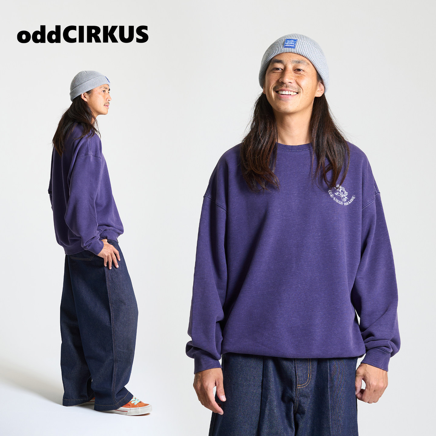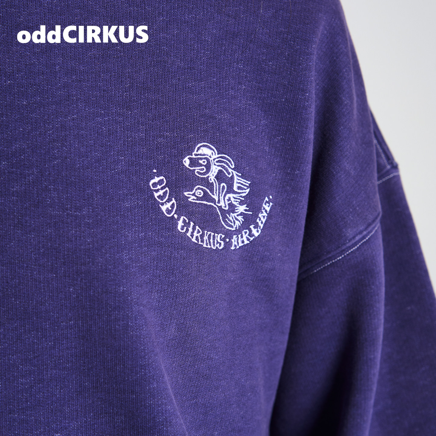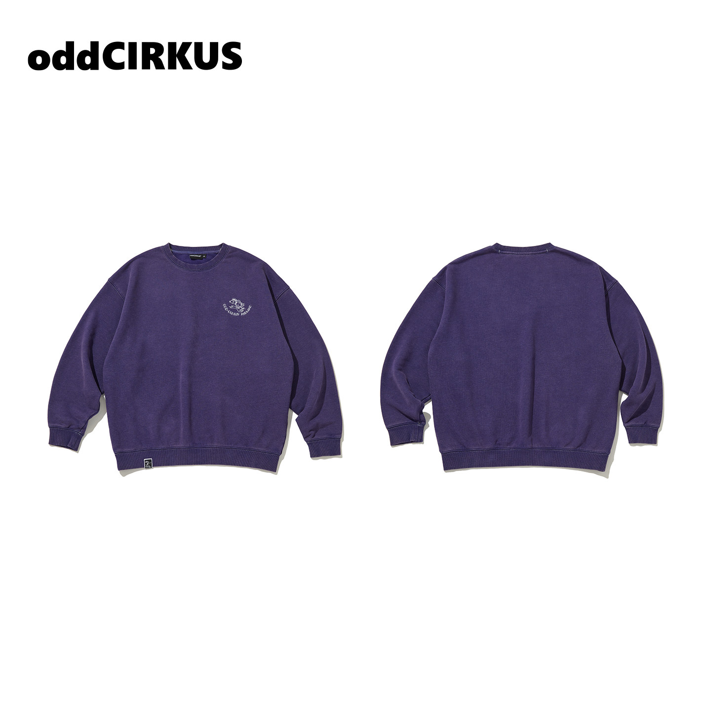 📚 oddCIRKUS圆领卫衣 日系宽松紫色卫衣水洗长袖男女同款刺绣图案
